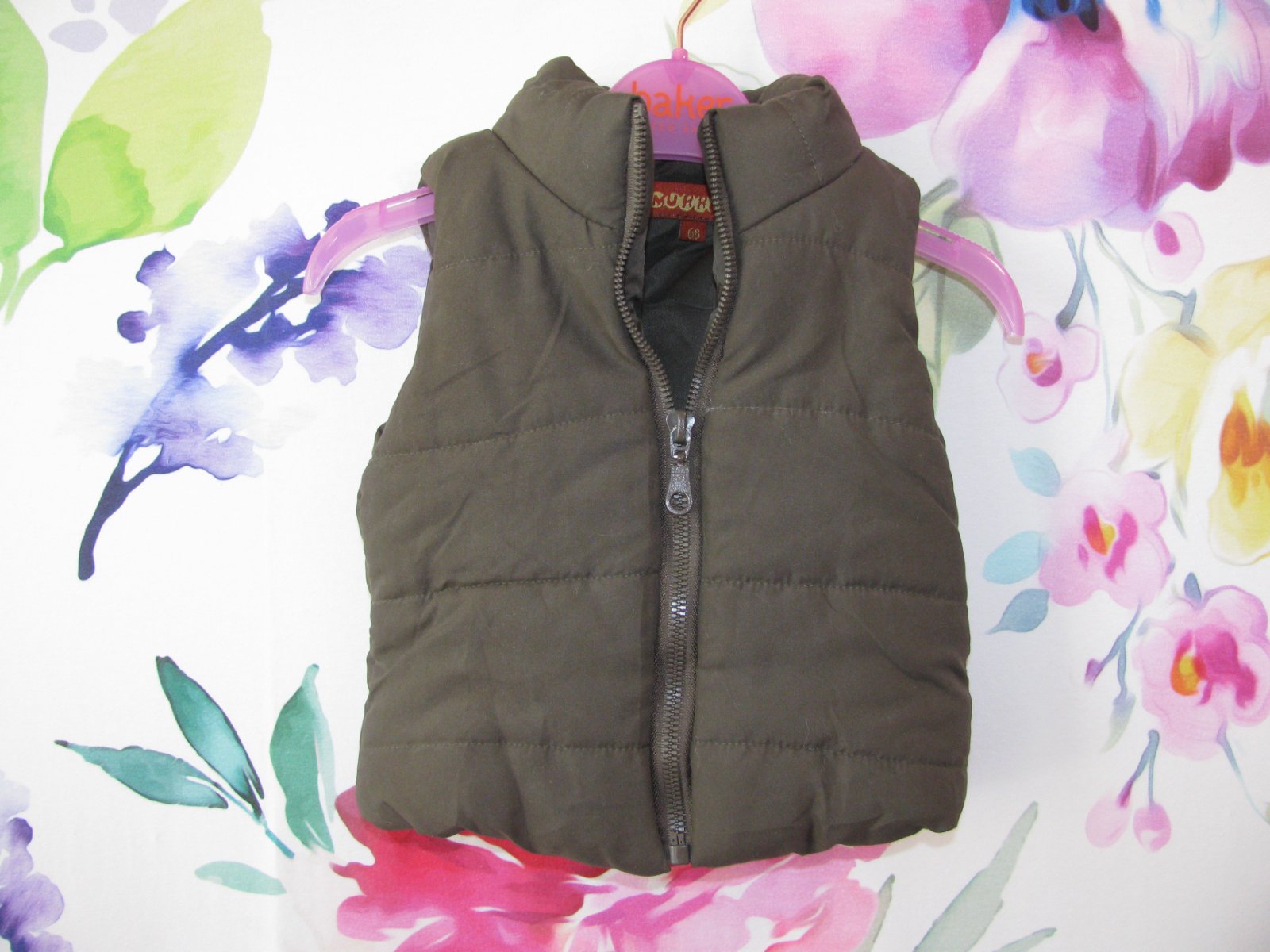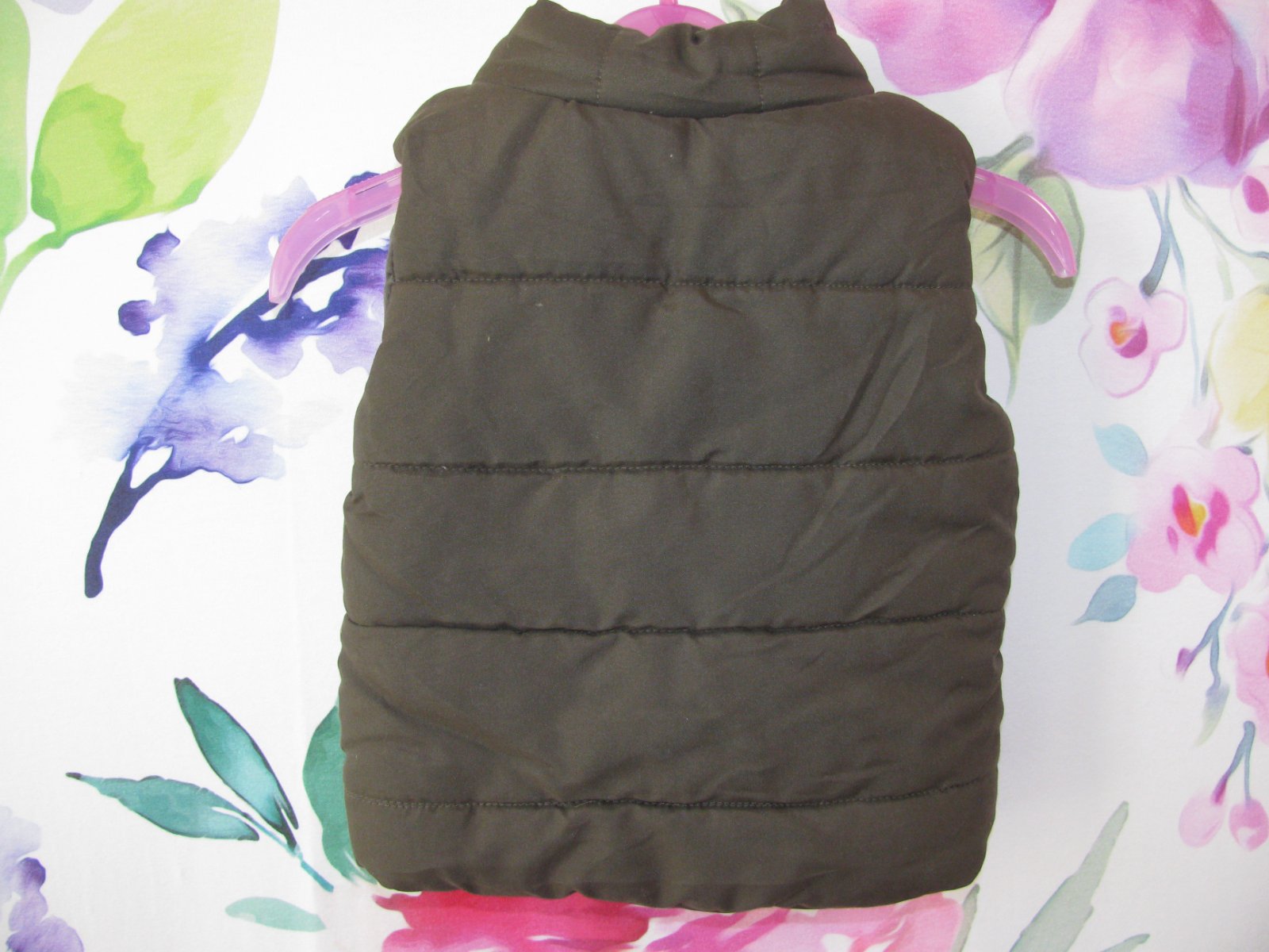 Hezká, lehká tmavě hnědá vesta, zap. na zip, bez kapes, 100% polyester.