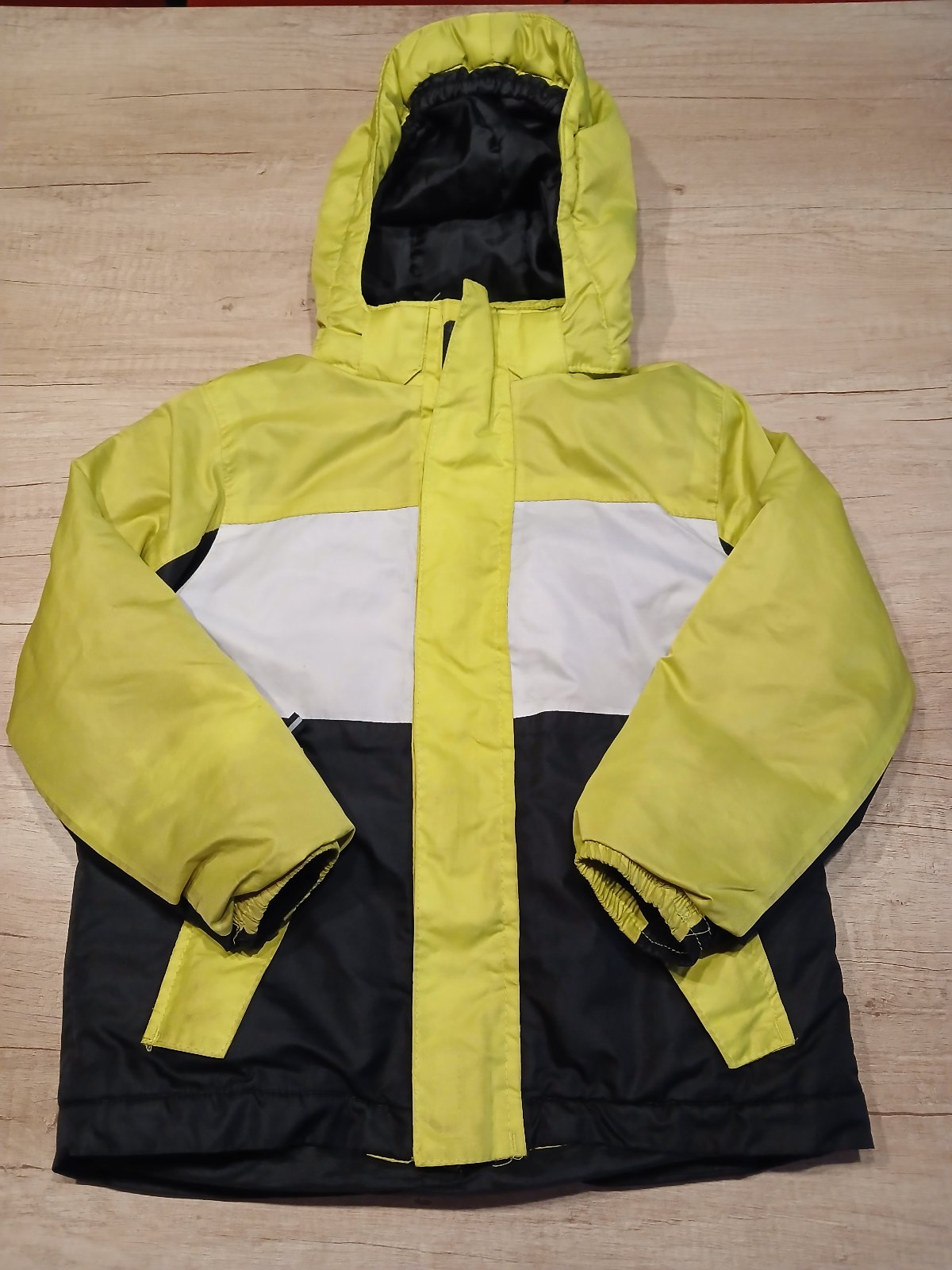 Stav dobrý vše viz.fota vel.42 odpovídá. U krku lem trošku umazané viz.foto. Sněžný pás. Kapuce je srulována v límci nepoužívala jsem. Rozměry 64cm a 71,5cm. Značka ConWay