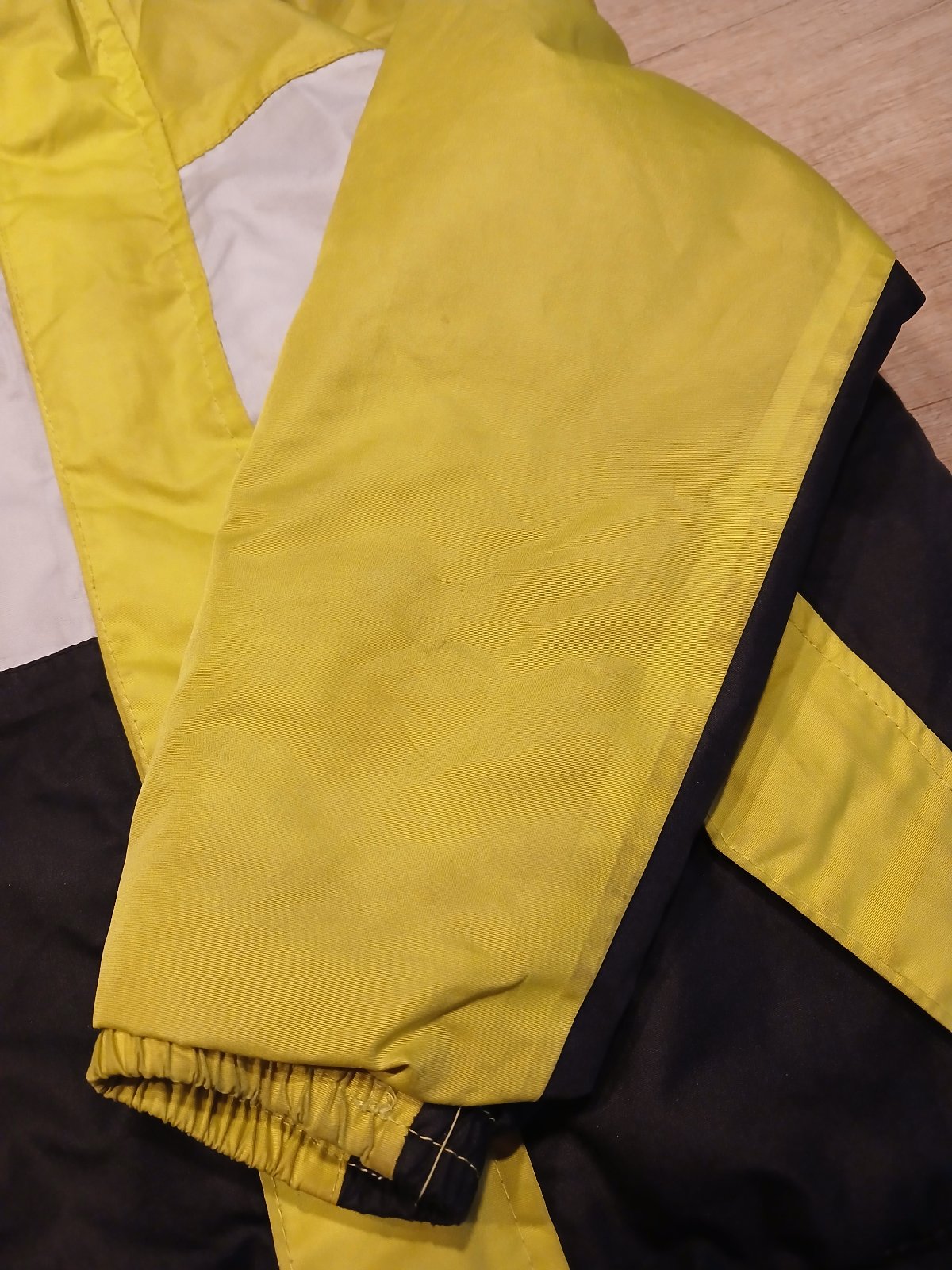 nošené, spíše do školky/k babičce/na doma, již nejsou top stav - mají sem tam flíčky (viz foto - více je to vidět na světlejší bundě), cena celkem