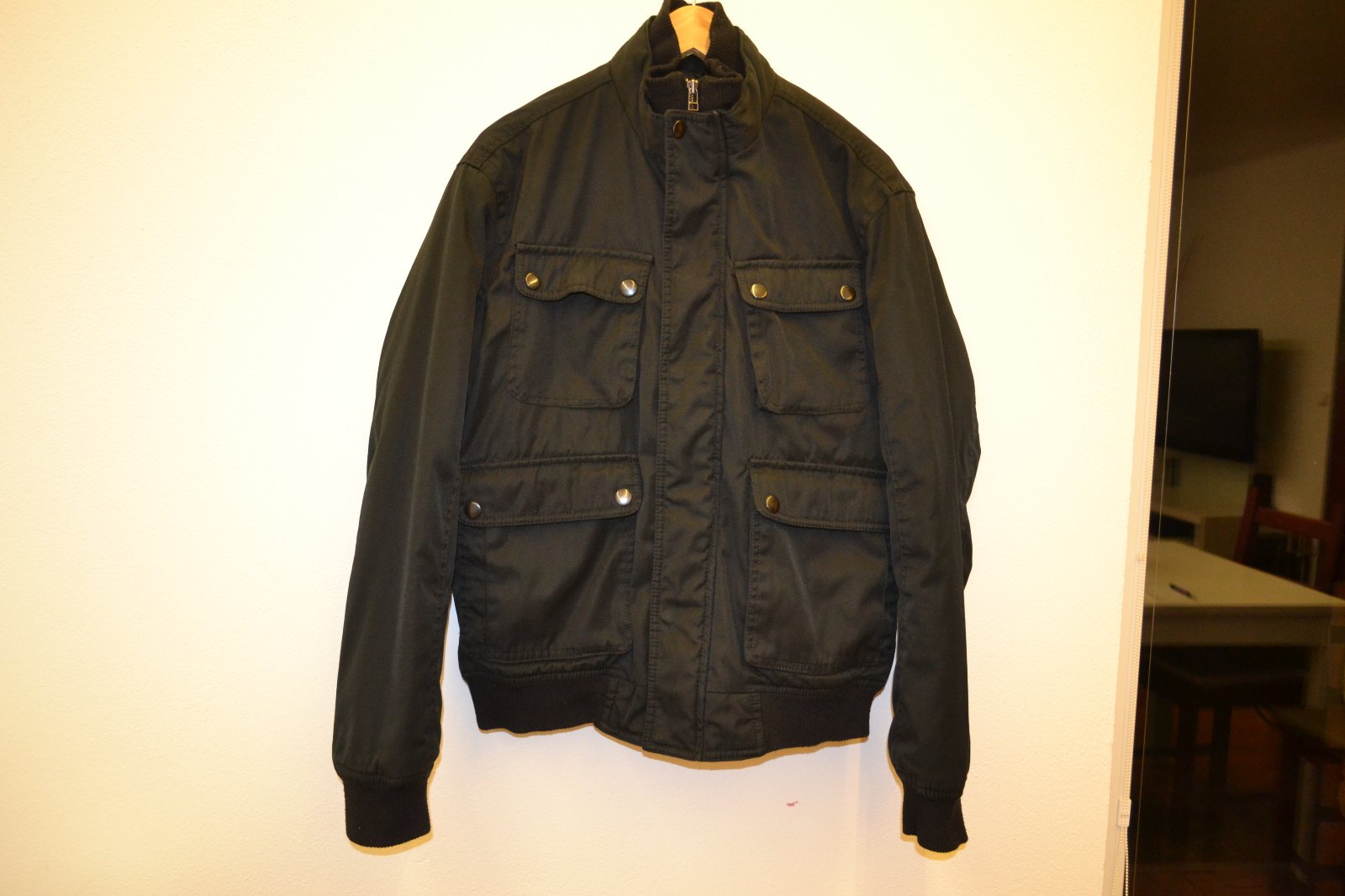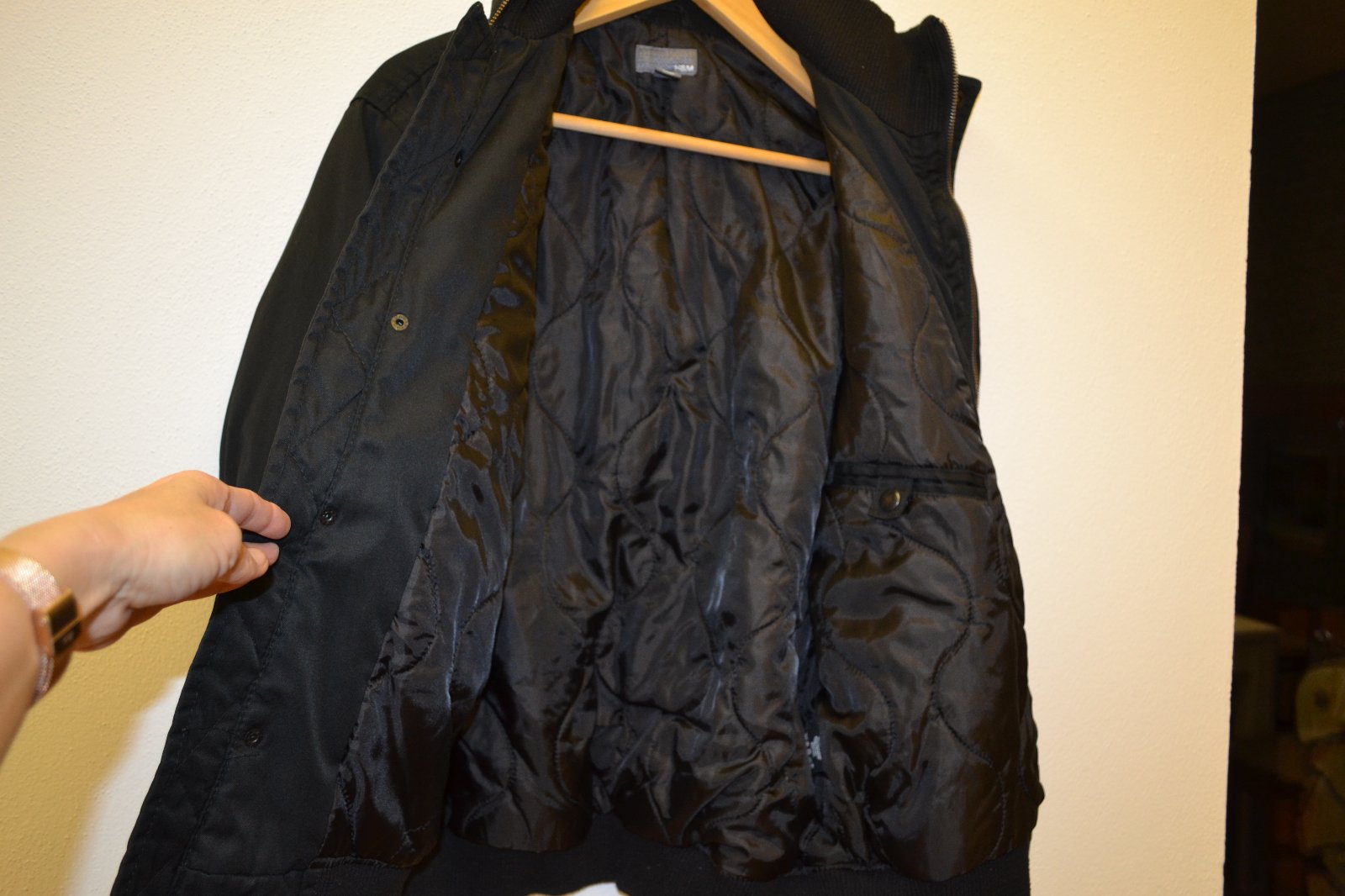 Nabízím nošenou bundu zn. H&M vel. 54. Délka 64 cm, šířka v průramcích 2 x 63 cm, šířka ramen 50 cm, rukáv od krku 83 cm, rukáv od ramene 68 cm.