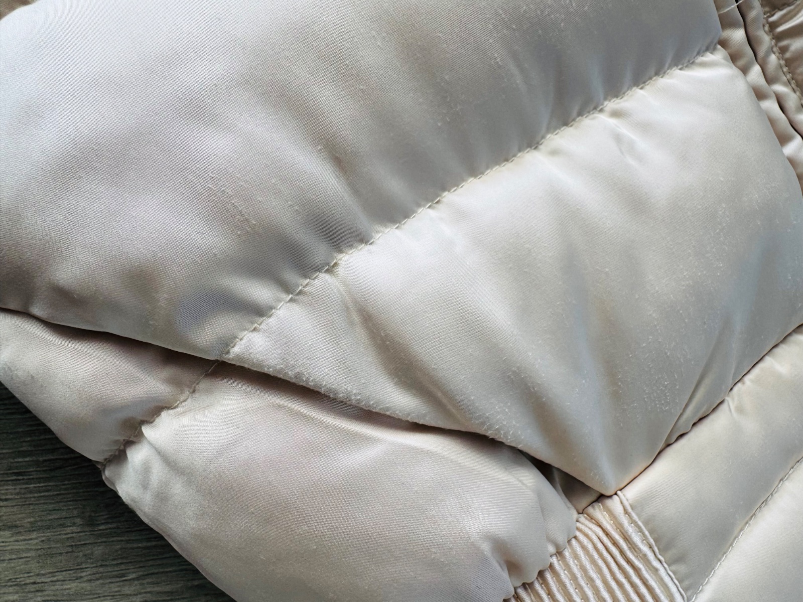 Jediná vada jsou na místech kolem rukávu a kapsy lehké žmolíky viz foto. Jde vidět jen zblízka, možná půjde odstranit.