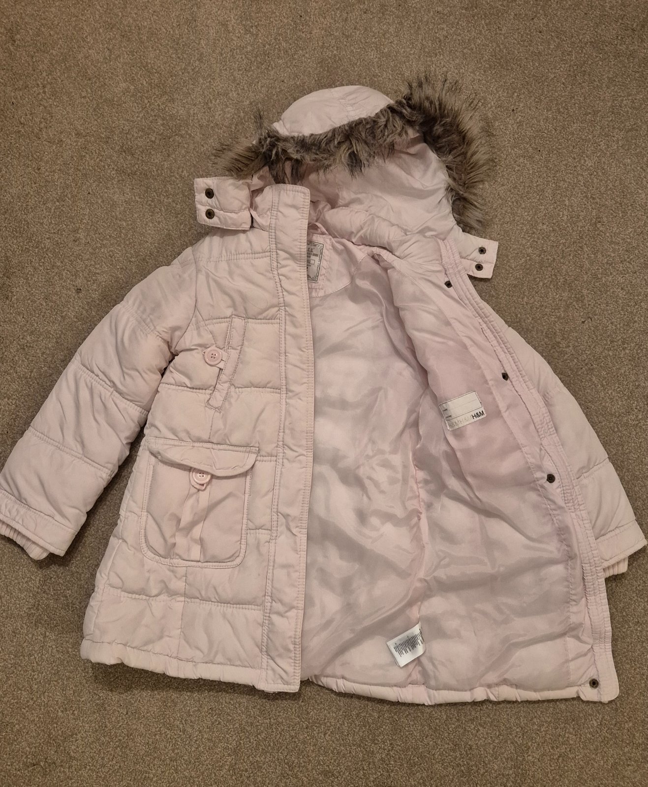 dívčí zimní bunda, značka neuvedena, vel 7-8 let. Známky používání, občas vykukuje nitka, ve předu čárka od tužky - vyfoceno. Nevím zda půjde vyprat.