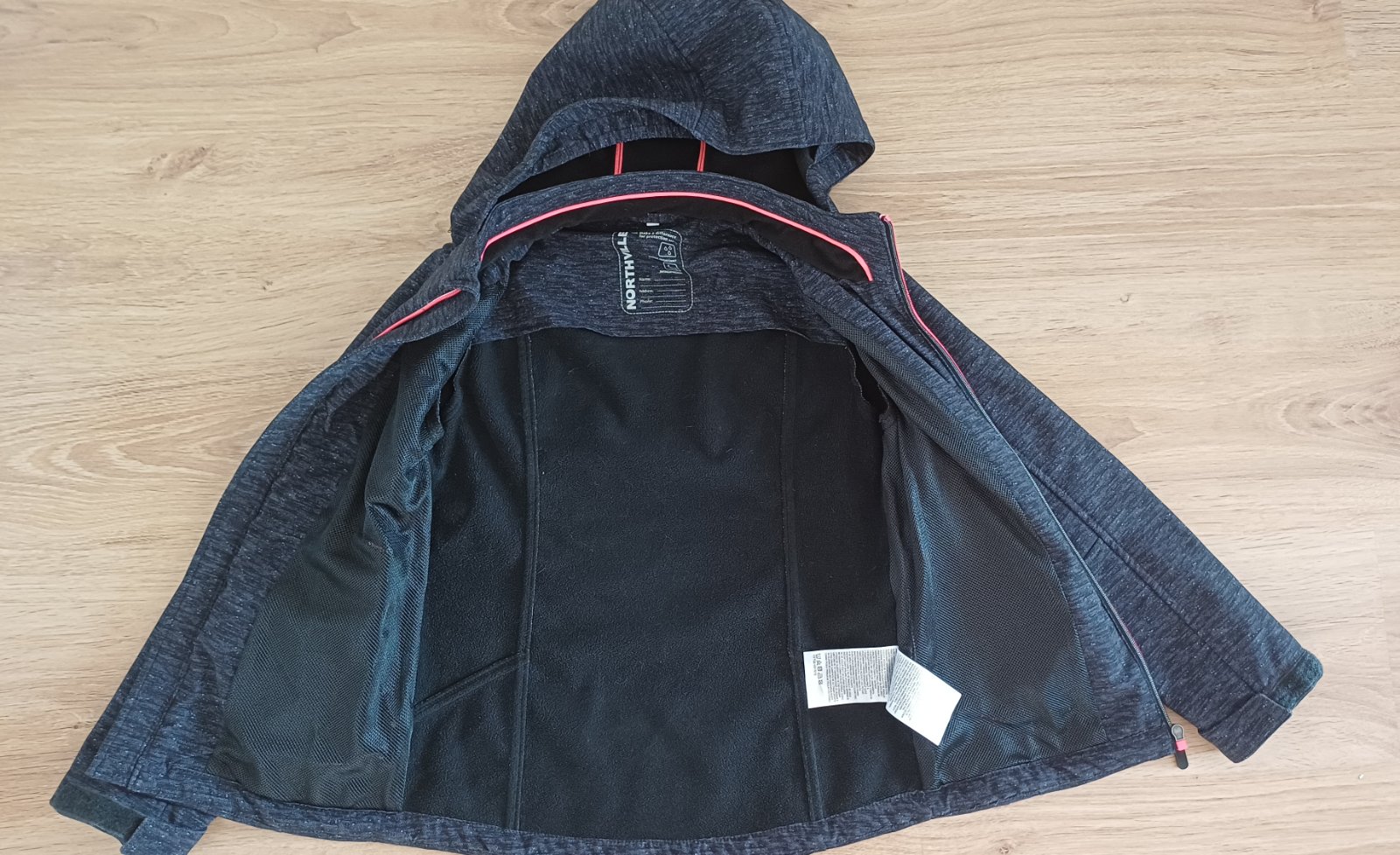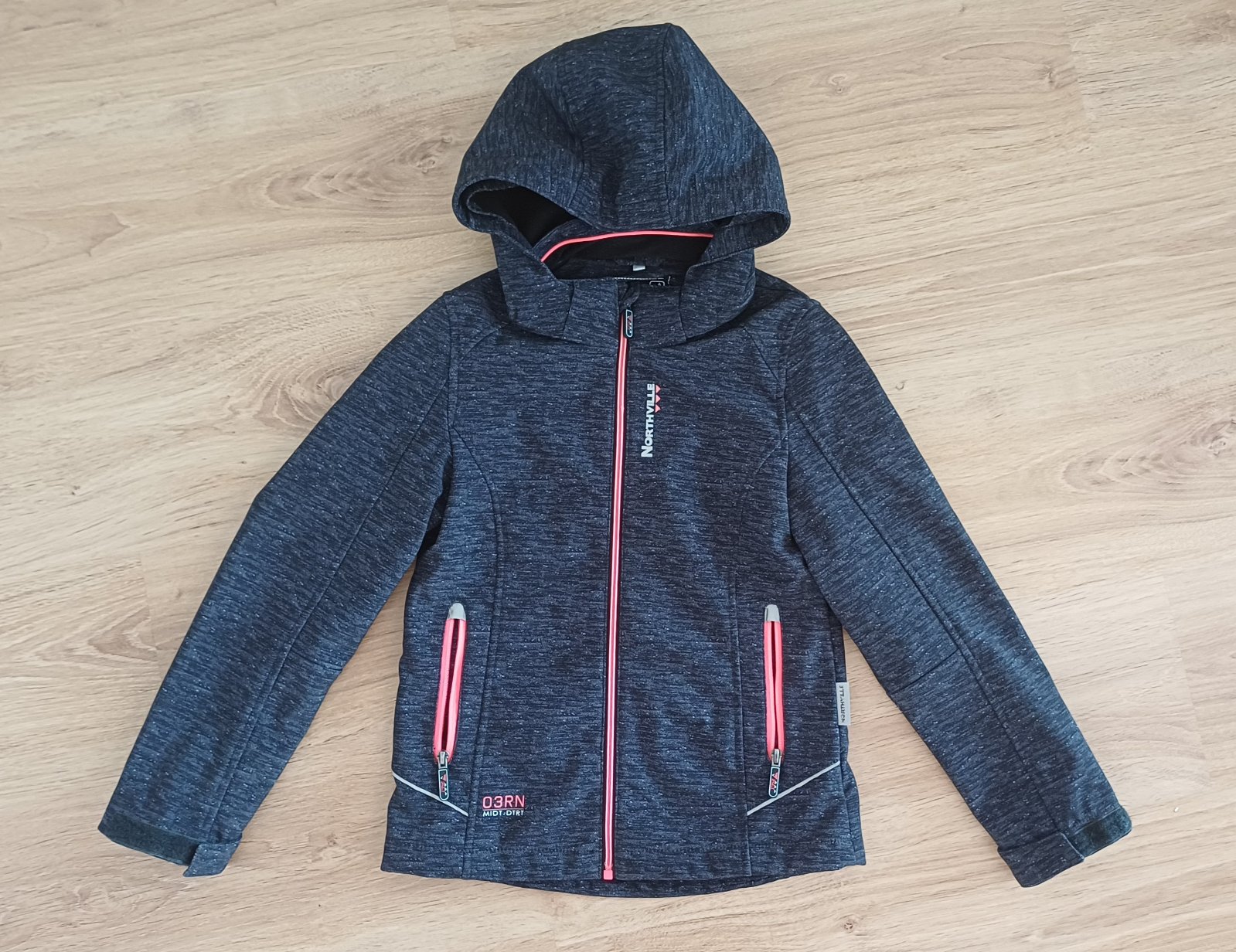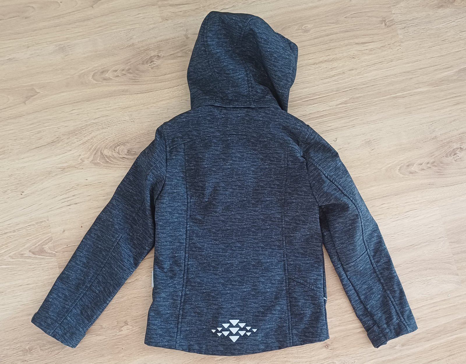 Moc pekna, bez vad, jako nova. Barva je tmave seda. Holcici. Pevnejsi softshell. Uvnitr fleece. Kapuce odepinaci na zip. Reflexni prvky. Konce rukavu se daji stahnout na suchy zip. Delka od krku 53, sirka 38,5, rukav od krku 57, od ramene 50,5, vnitrni 37.