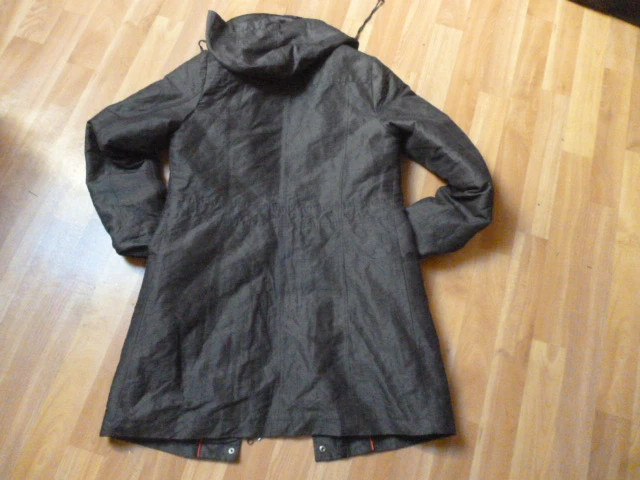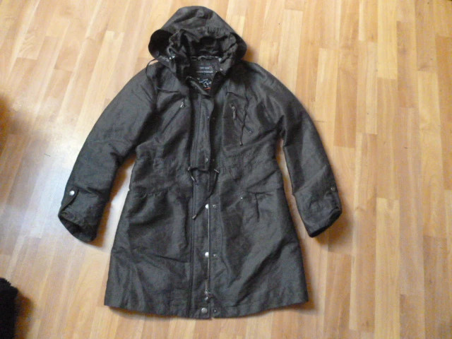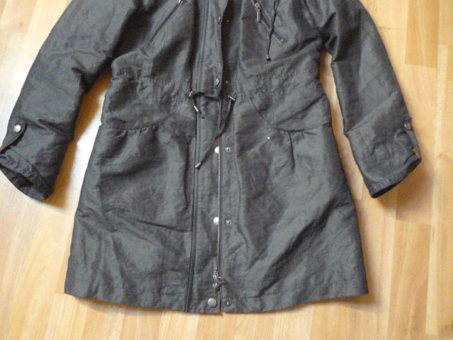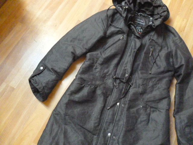 ošená, moc pěkná,středně vyteplená, krásně sedí, příjemná, délka je 87 cm, rukáv od krku je 74 cm, průramky 2x51 cm, dole 2x59 cm, psaná vel. S, ale asi i M zn.Per Una