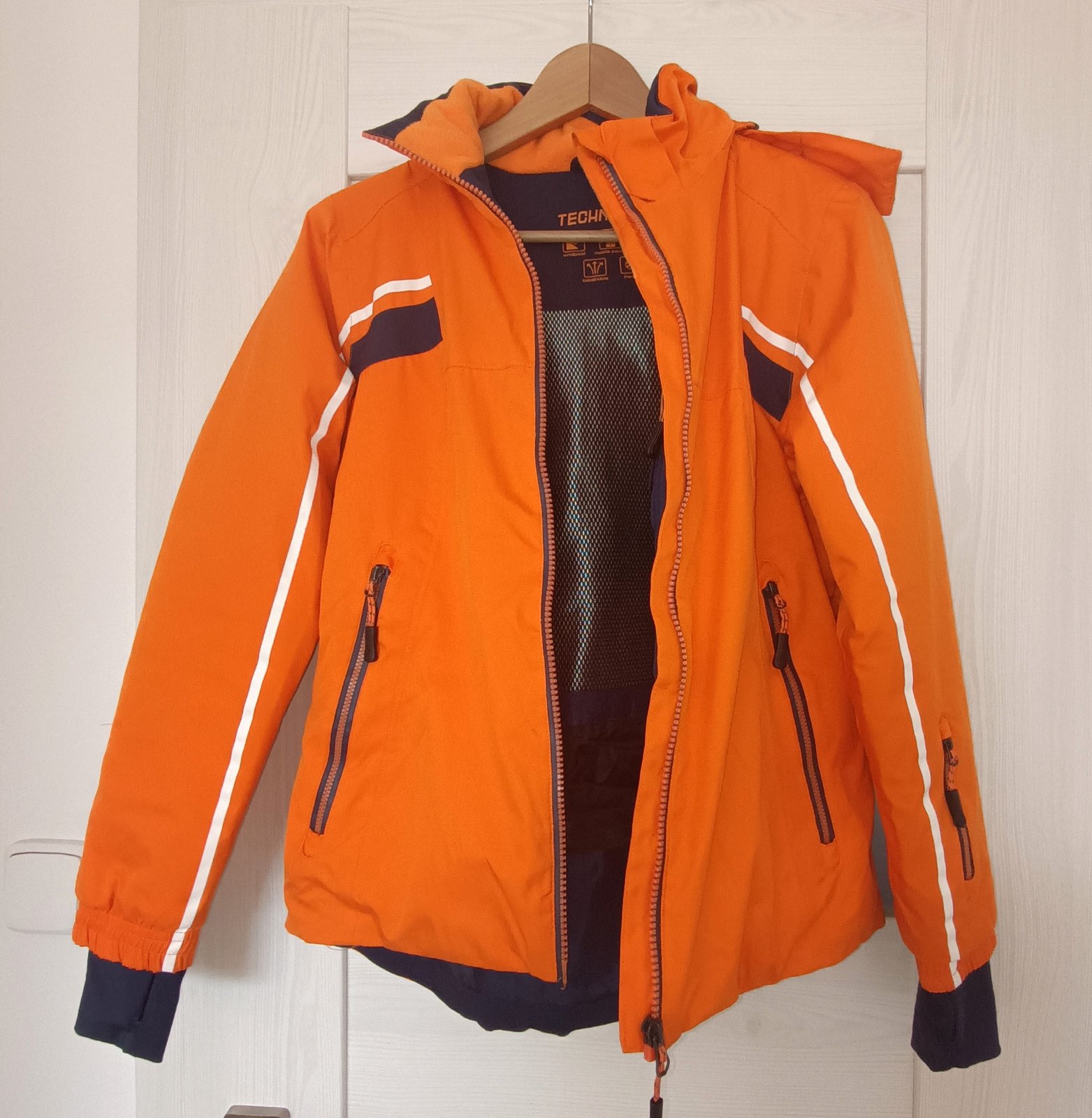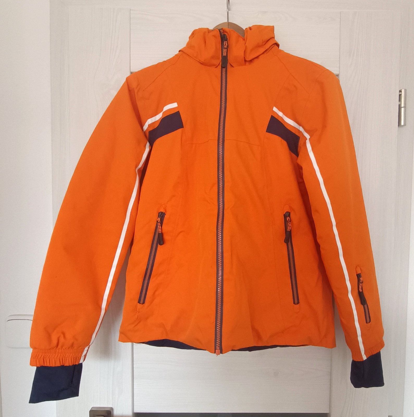 Oranžová lyžiarska bunda, zn. Crivit PRO ( Lidl ) , velk. 146/152, dĺžka - 59cm, rukávy (od kapuce) - 67cm, na zip, odnímateľná kapuca na zip, vyteplená fleesom, vnútorný pás. 2 pidi flíčky na prednej strane. Inak v super stave.