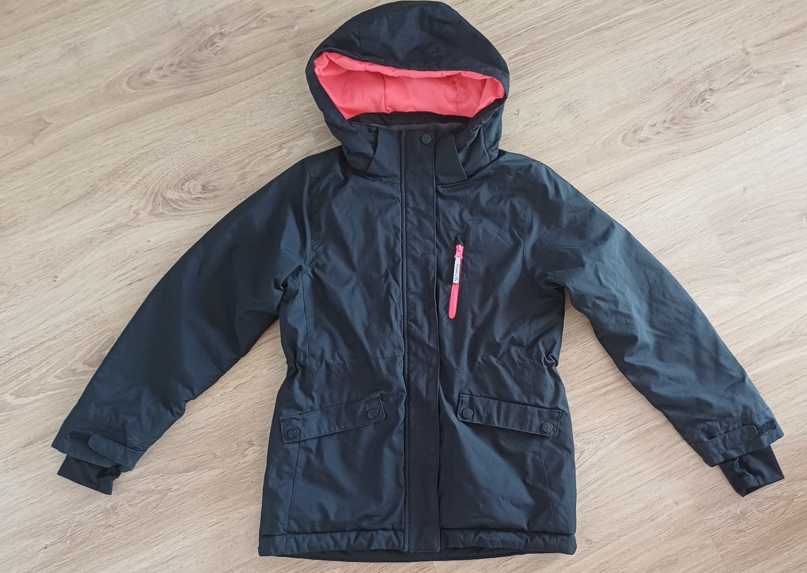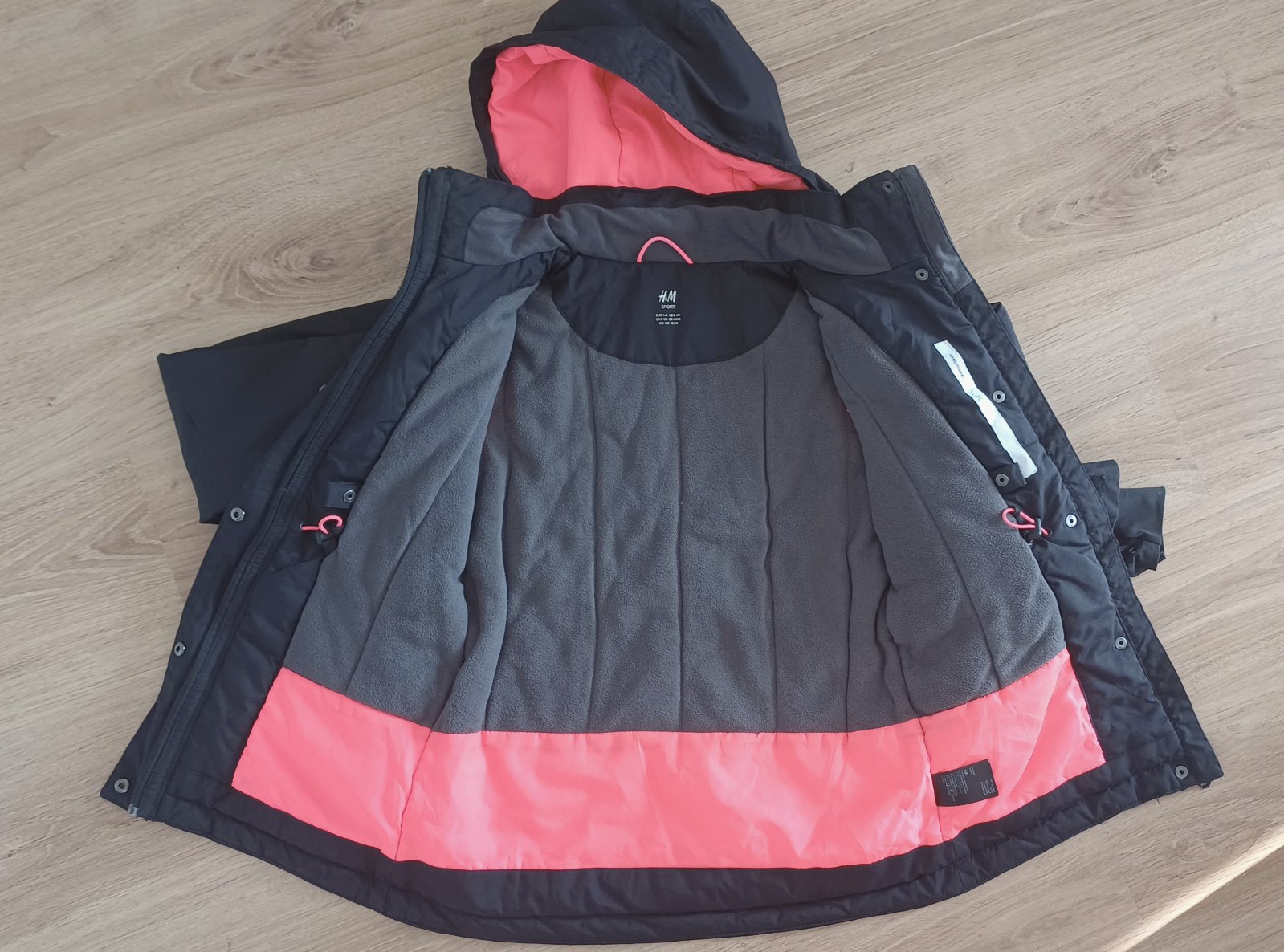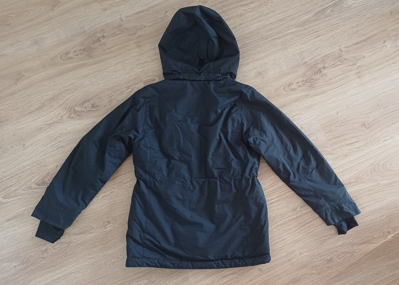 Moc pekna, zachovala, sustakova, uvnitr fleece. Na jaro/podzim, mirna zima. Barva je cerna. Vnitrni naplety na ruce a stahovani zapesti na suchy zip. Stahovani pasu olivkou. Kapuce jde odepnout na druky. Delka od krku 58, sirka 42, rukav od krku 59,5+ naplet, od ramene 53,5, vnitrni 39.
