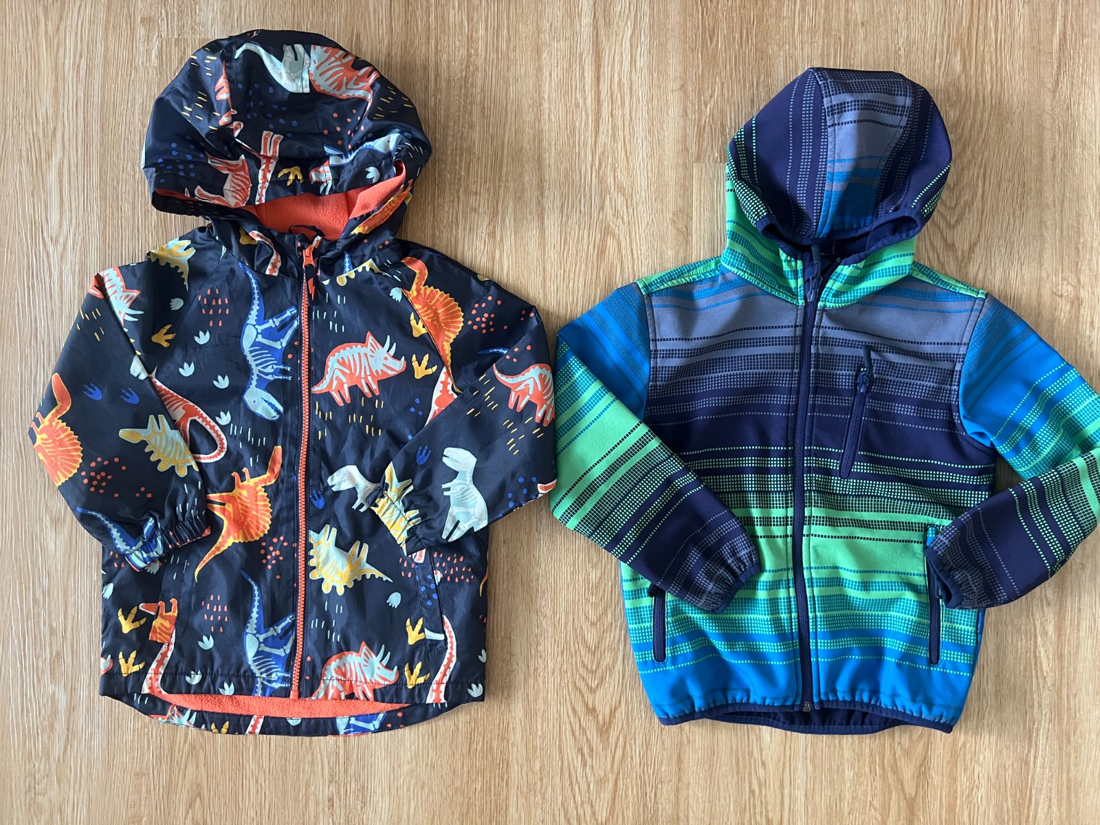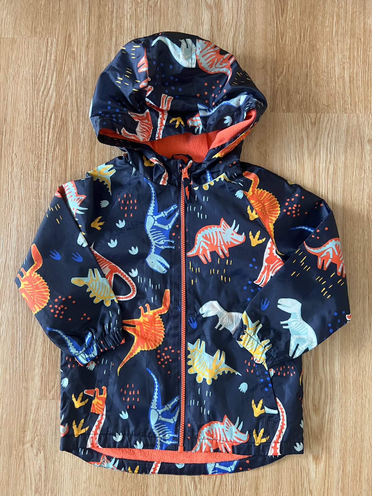 Tmavě modrá dinosauři - F&F, vel. 116, lehká šusťáková, trup vyteplený