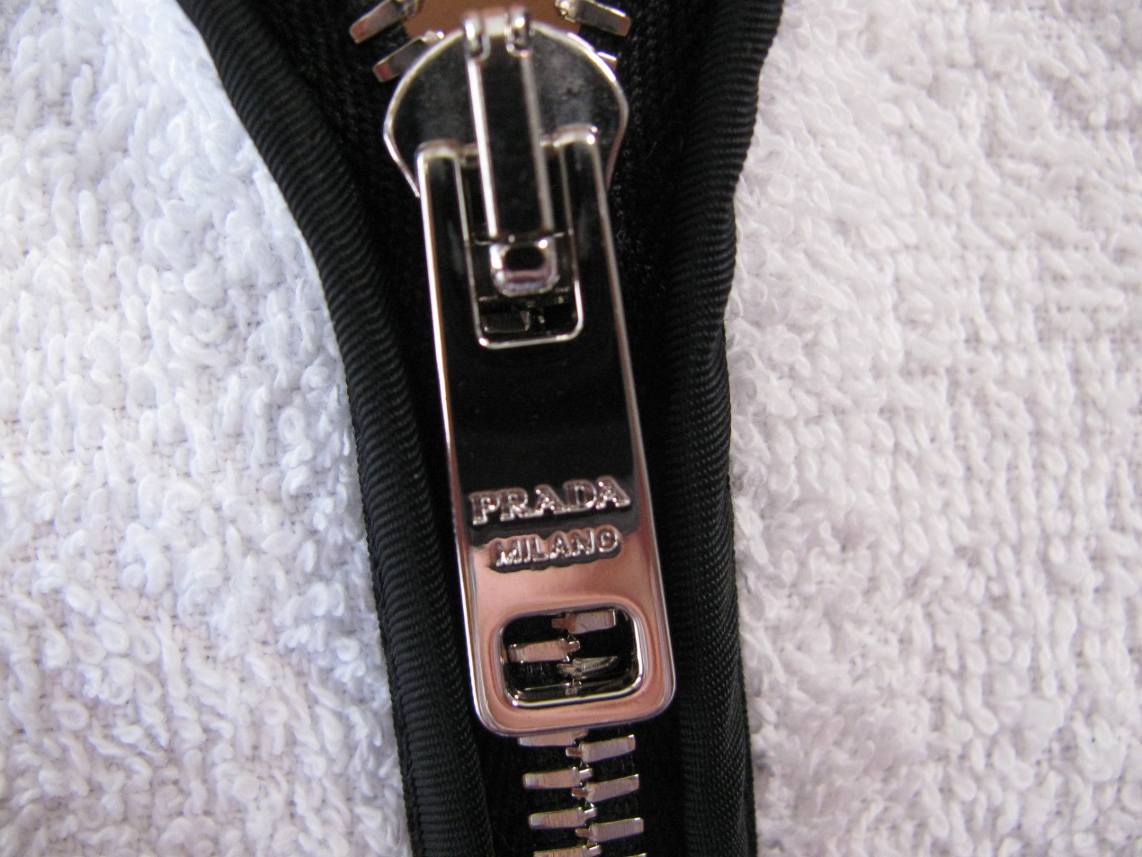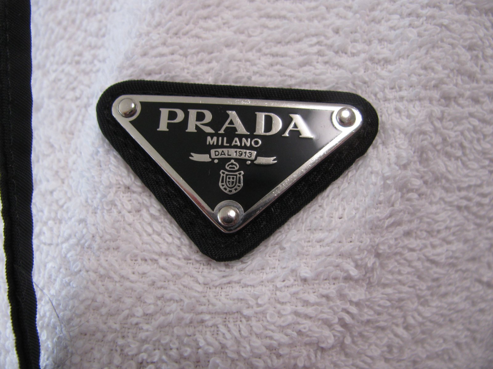 Froté bunda s kapucí,smaltované kovové logo PRADA