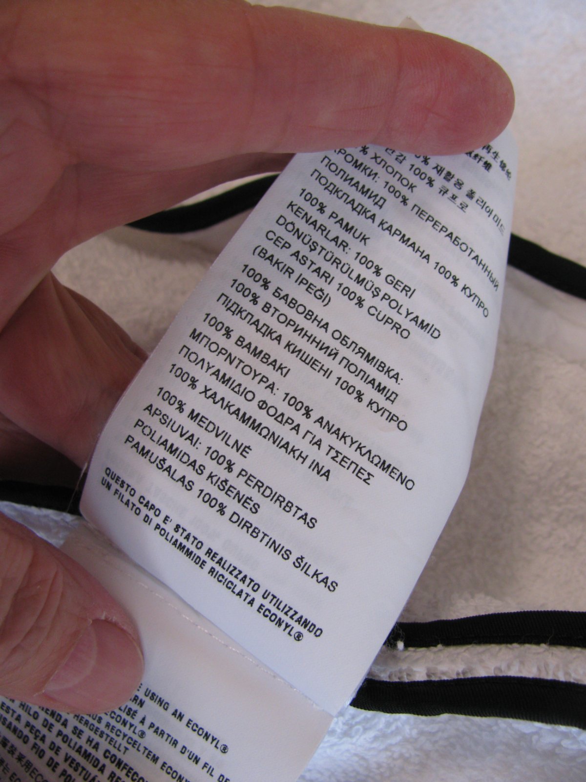 Luxusní bílá froté bunda s kapucí,zap. na zip, boční kapsy, v kapuci a dole v lemu šňůrky na ztažení, konce rukávů do gumy, smaltované logo na prsou, 100% bavlna, lemy 100% polyamid. Top stav bez vady. PC opravdu velmi vysoká, lze dohledat. Je nám už malá, musíme prodat.