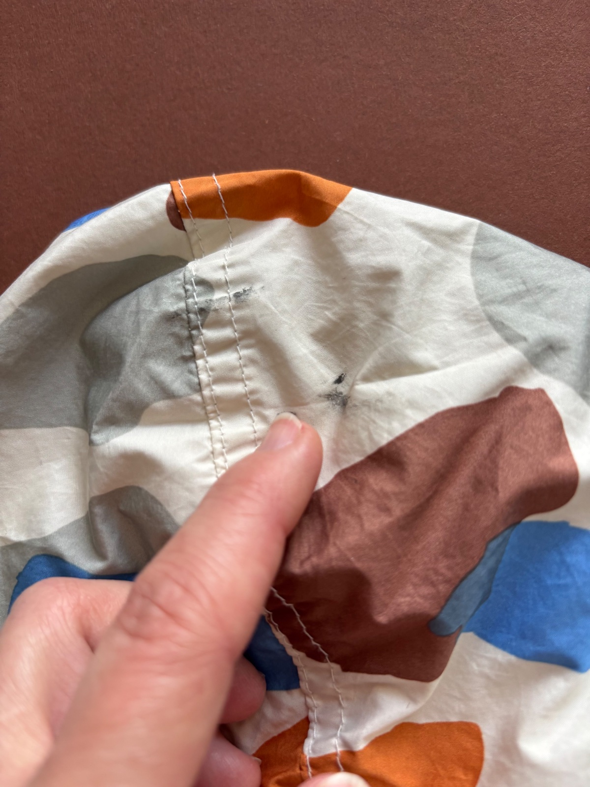 DOBRÝ STAV - žmolíky na lemech, spíš na donošení, na doma, výrznější žmolík....u takovéto stavu oblečeni je vždy zohlednění v ceně .