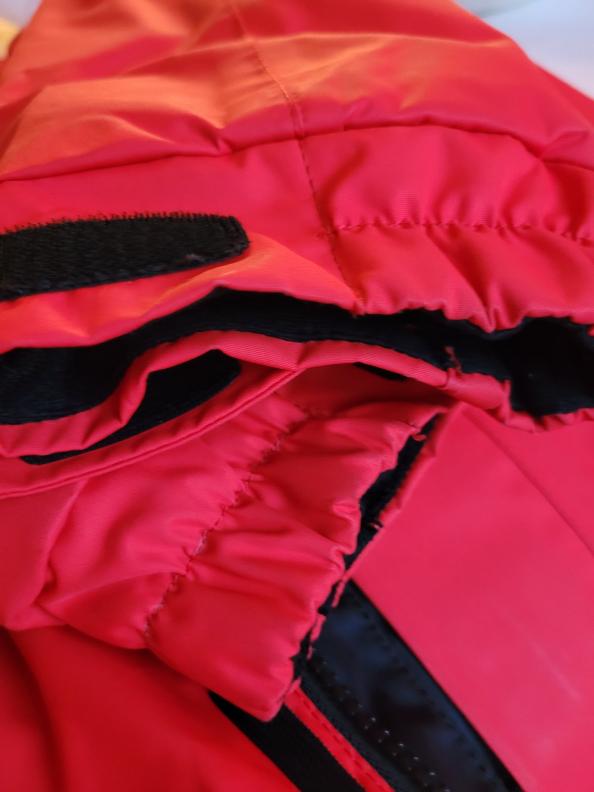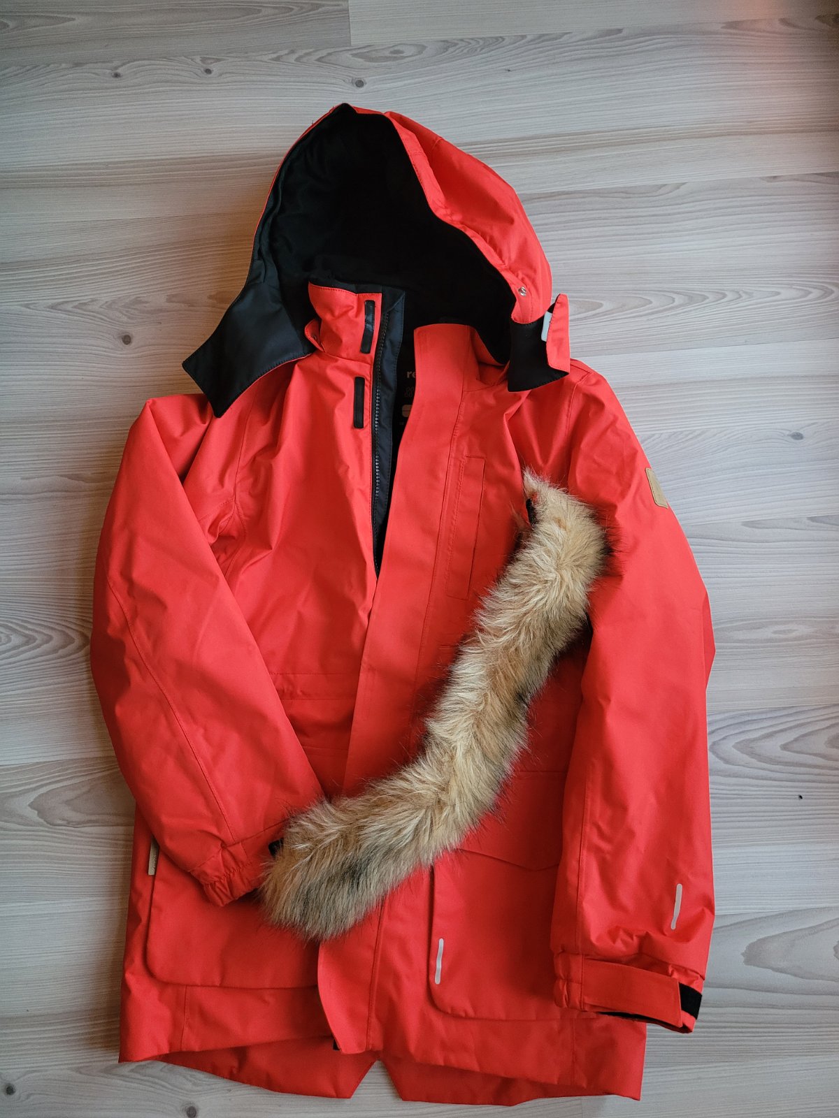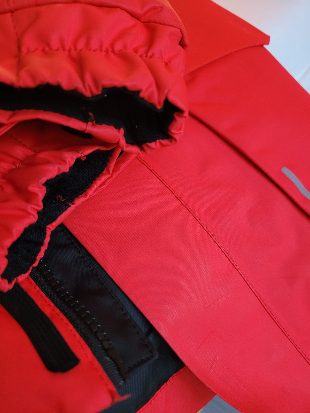 Velmi teplá kvalitní bunda. Bunda je bez vad a větších známek nošení. Vydrží určitě 2 sezóny. Samozřejmě je bunda nošená, ale krom občasných "uhlazených" míst, například u hrany rukávů, není nošení znát. Pořizovací cena cca 4000. Bunda je krásně červená, foto trochu mate.