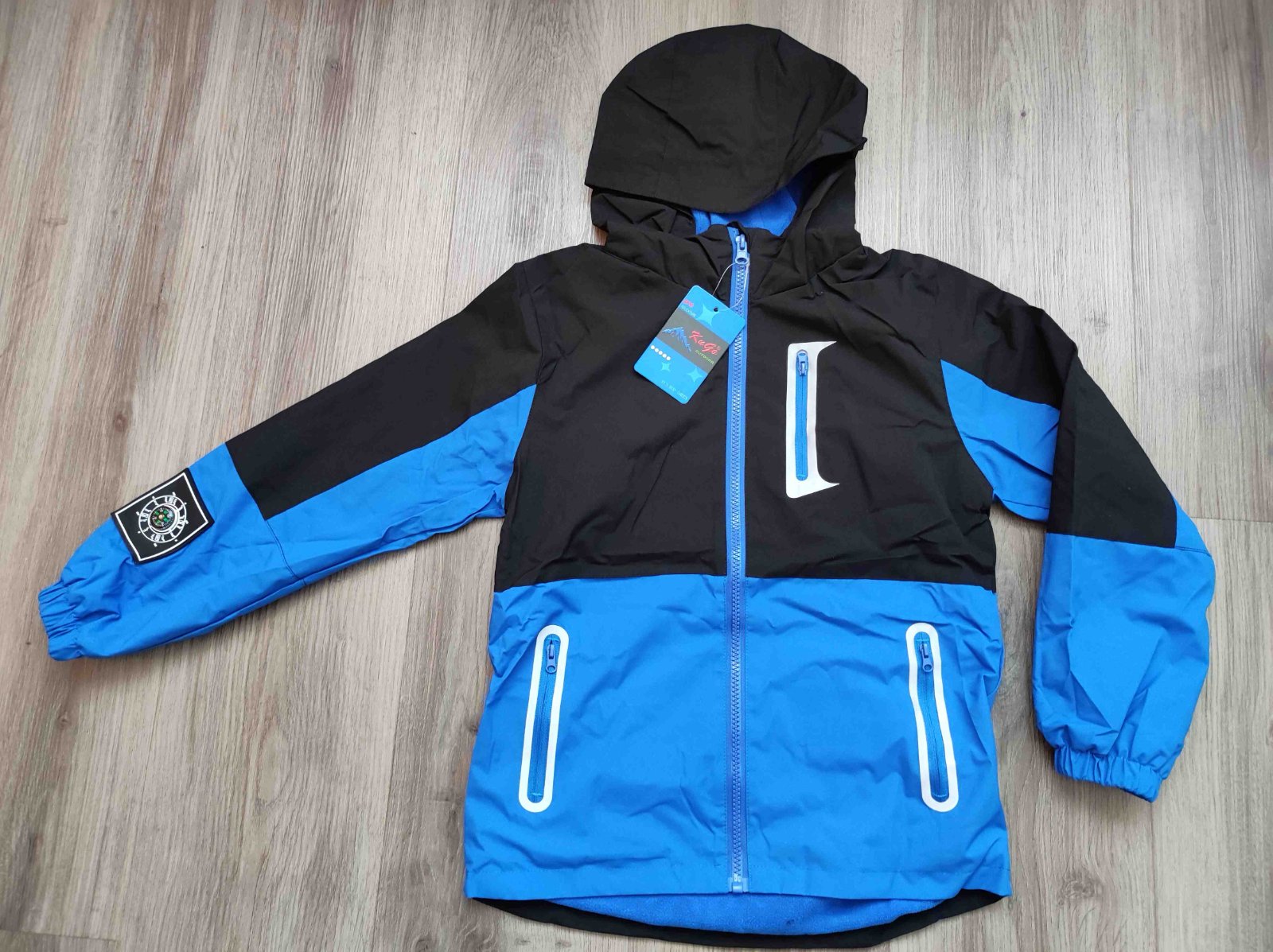Svrchu nepromokavý šusťák, uvnitř celá podšitá fleecem (včetně rukávů), zapínání na zip, u krku krytka zipu, 3 kapsy na zip, rukávy do gumy, prodloužený zadní díl, na rukávu kompas, reflexní prvky