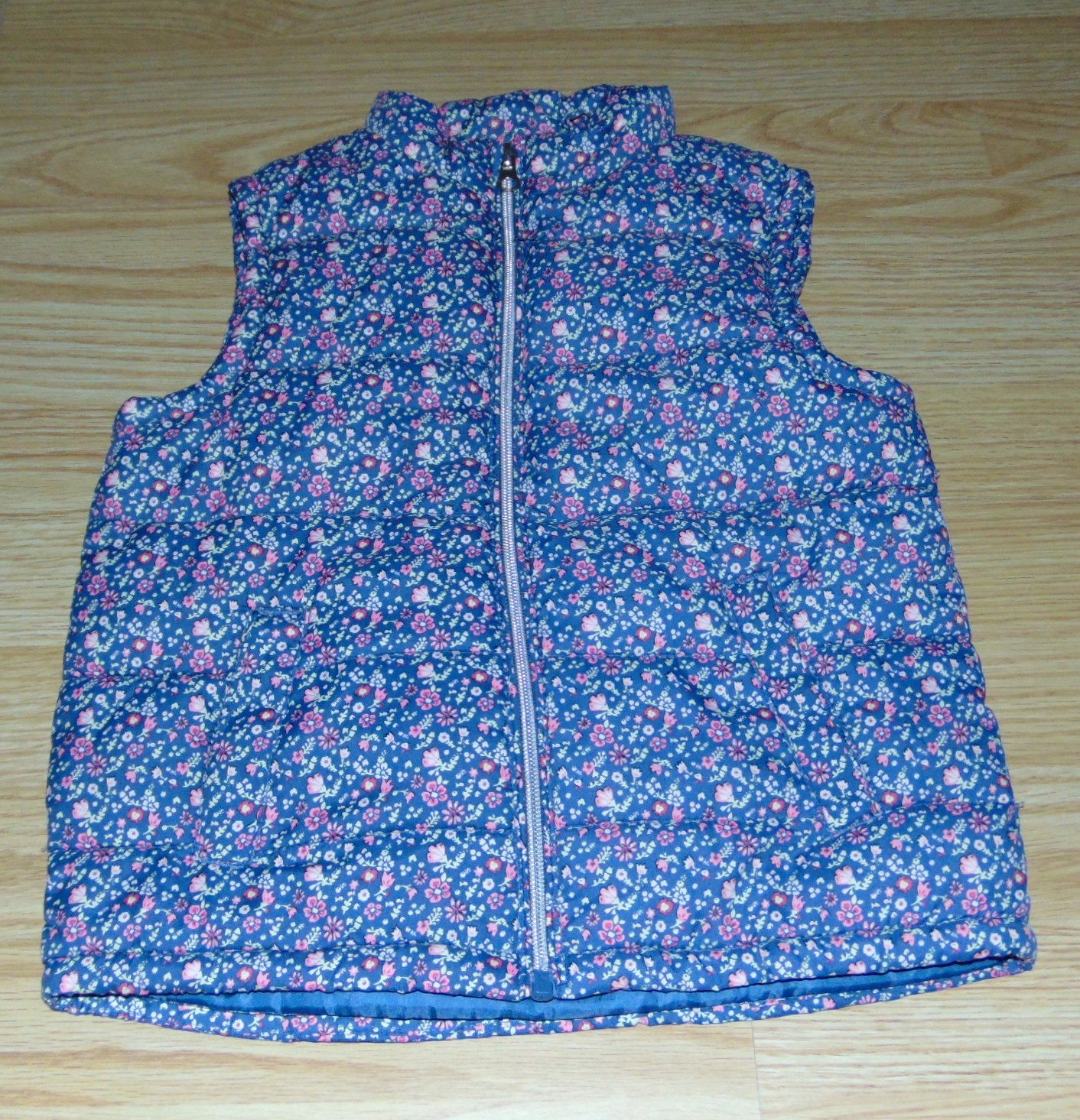 Prodám teplejší vestu,podšita fleesem,vršek šusťákový,zapínání zip+ druky,vyšší límec ke krku,2 kapsy. Nezničená,trochu žmolíky na fleesu. vel.128 délka 51cm,šířka 39cm