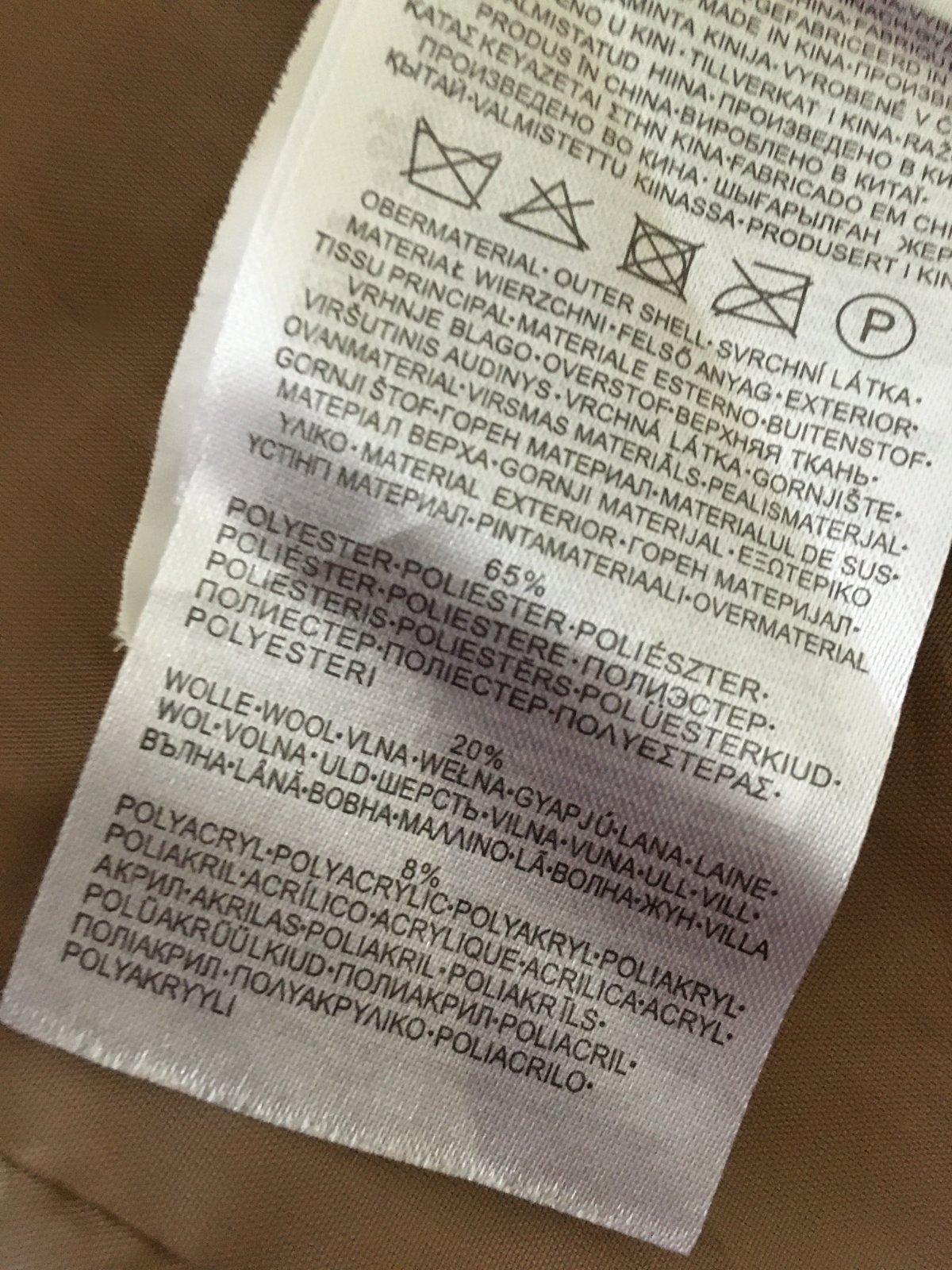 Postava běžně nosí vel. S, měří 174 cm (délka 71 cm, šířka 45 cm, ramena 40 cm, rukávy 60 cm).
