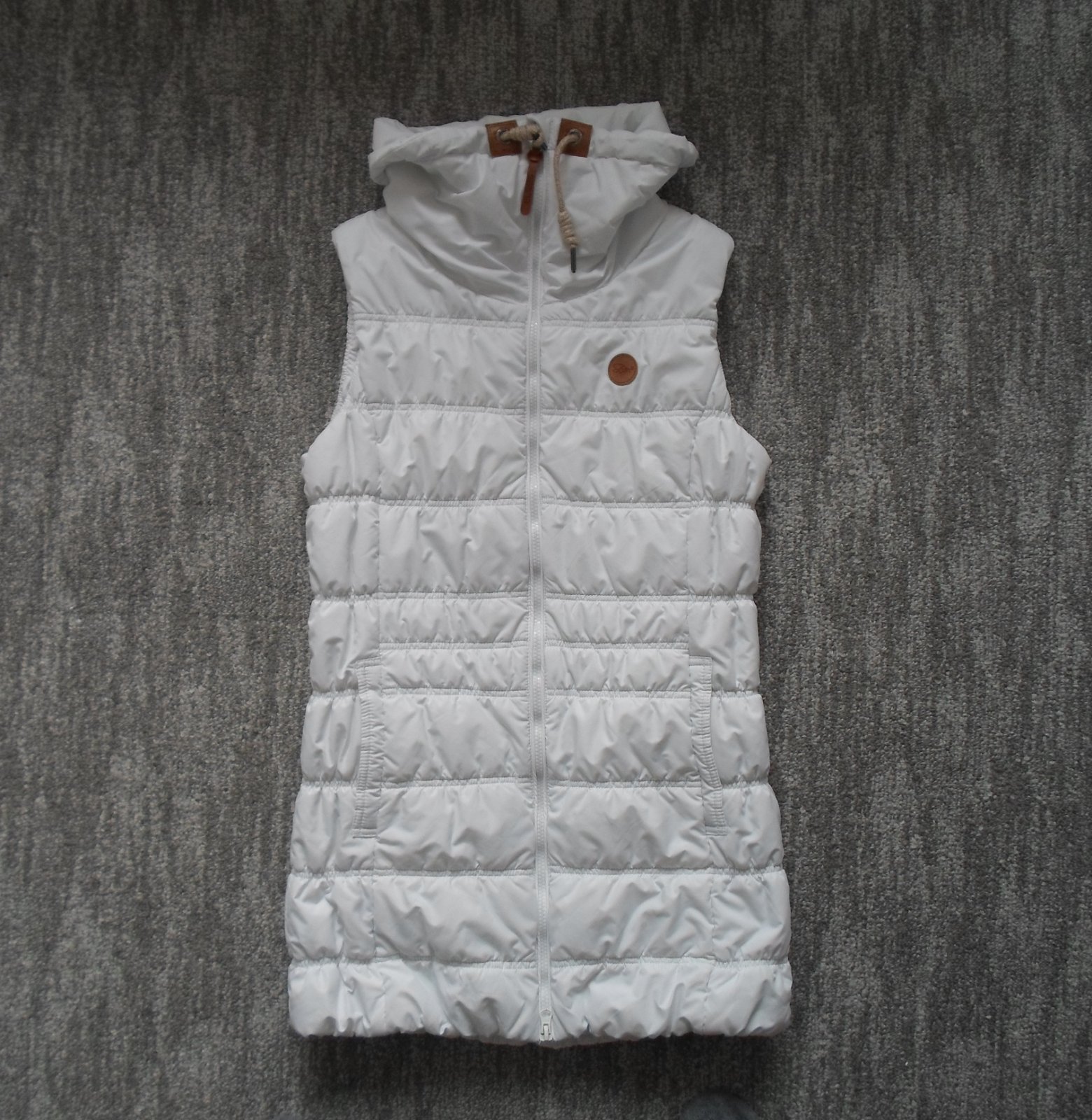 Bílá dlouhá delší zateplená vesta SAM