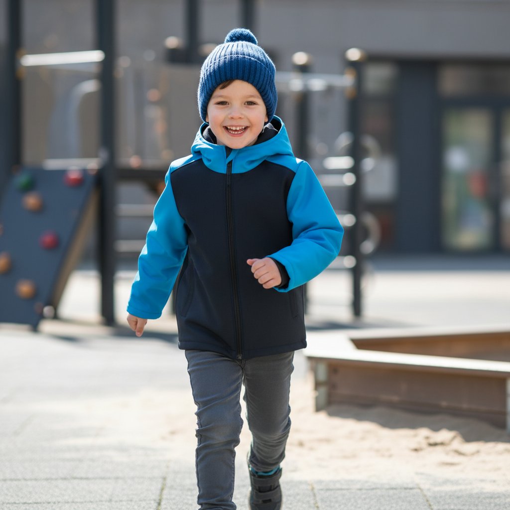 Softshellový materiál je měkký, pružný a lehký, takže děti neomezuje v pohybu při běhání, lezení ani hraní. Vnitřní fleecová vrstva příjemně hřeje a udržuje tepelný komfort bez zbytečného přehřívání.