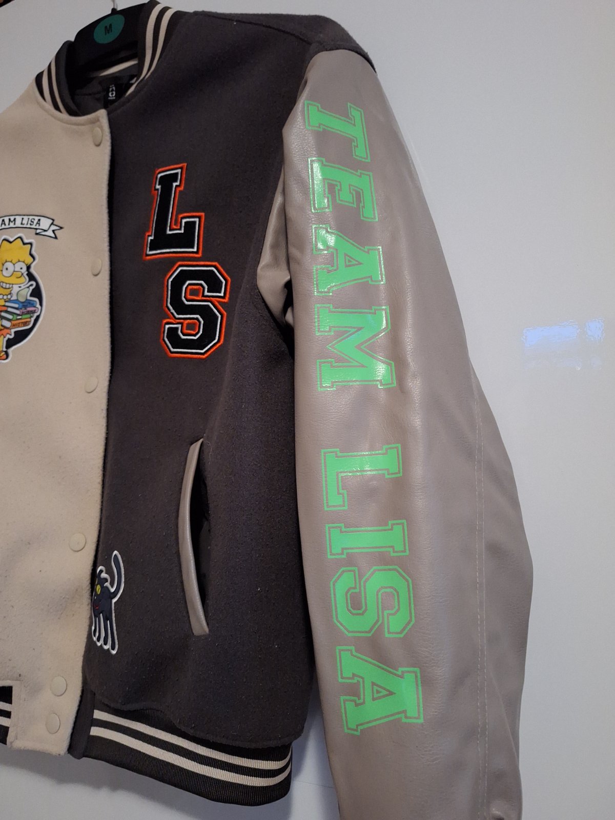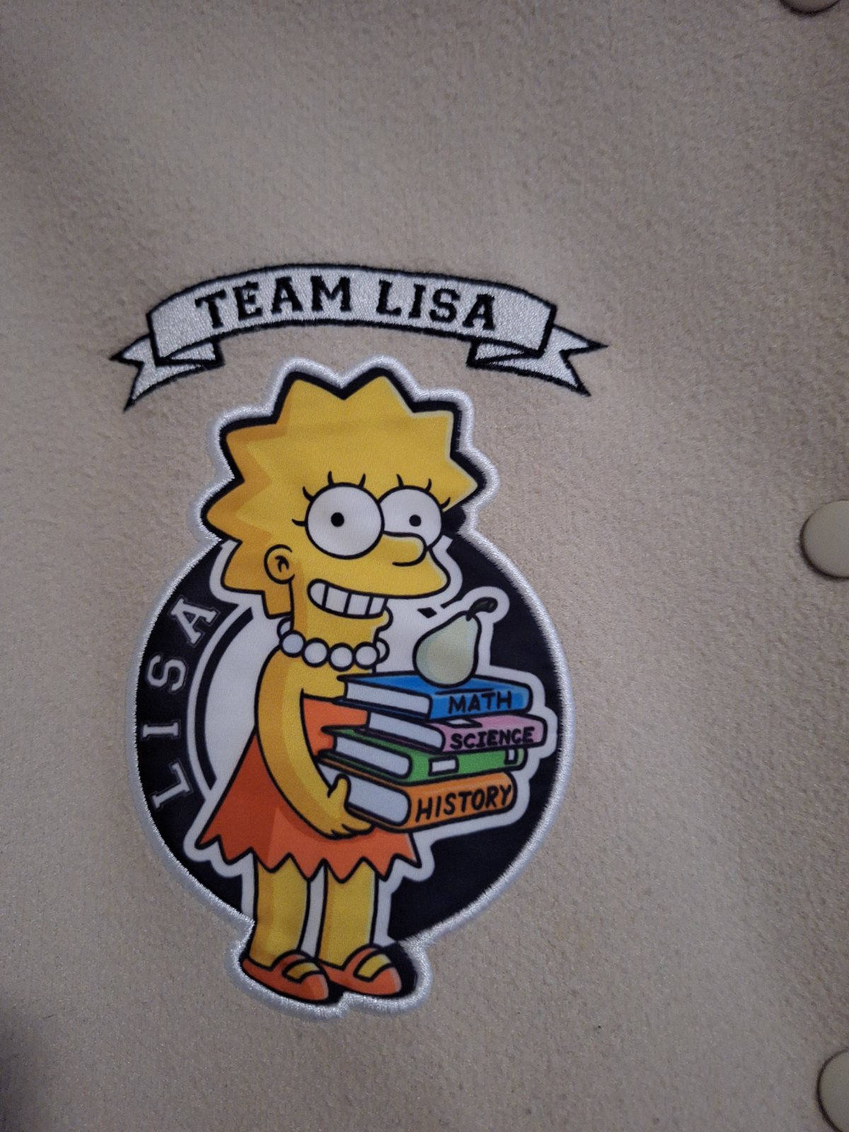 Dívčí bunda na zapínání na cvočky na přechodné období. S motivem The Simpsons Lízou.