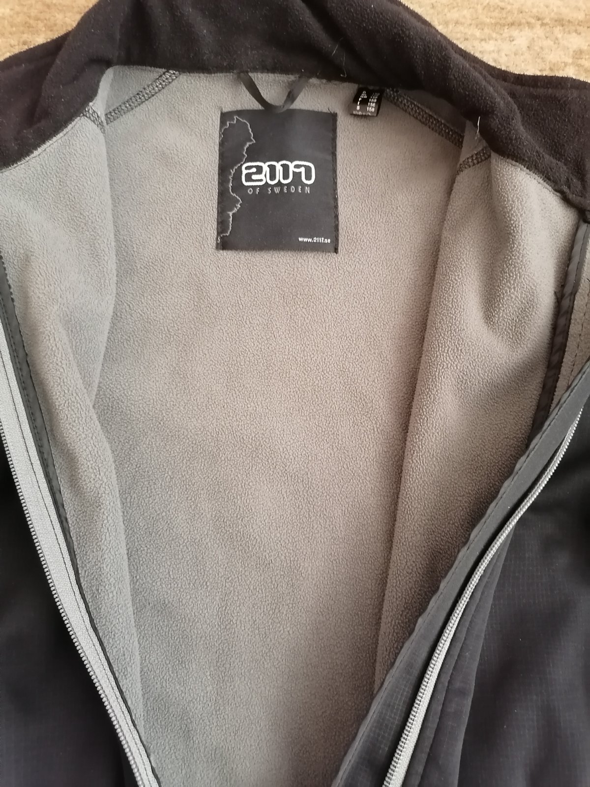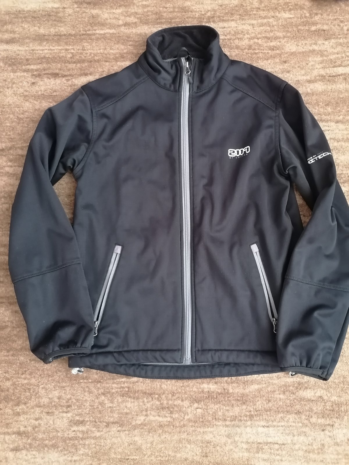 Softsheelová bunda s flísovou podšívkou. Vzadu malá dírka. Rukáv od ramene 58,5 cm, délka předního dílu 59,5 cm, zadního 62 cm, šířka 47,5 cm.