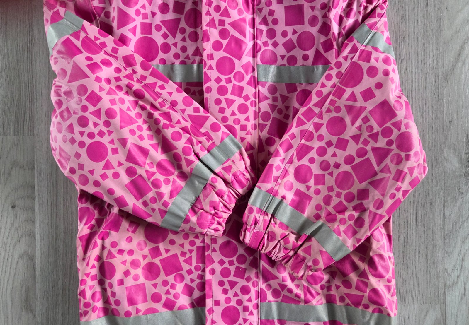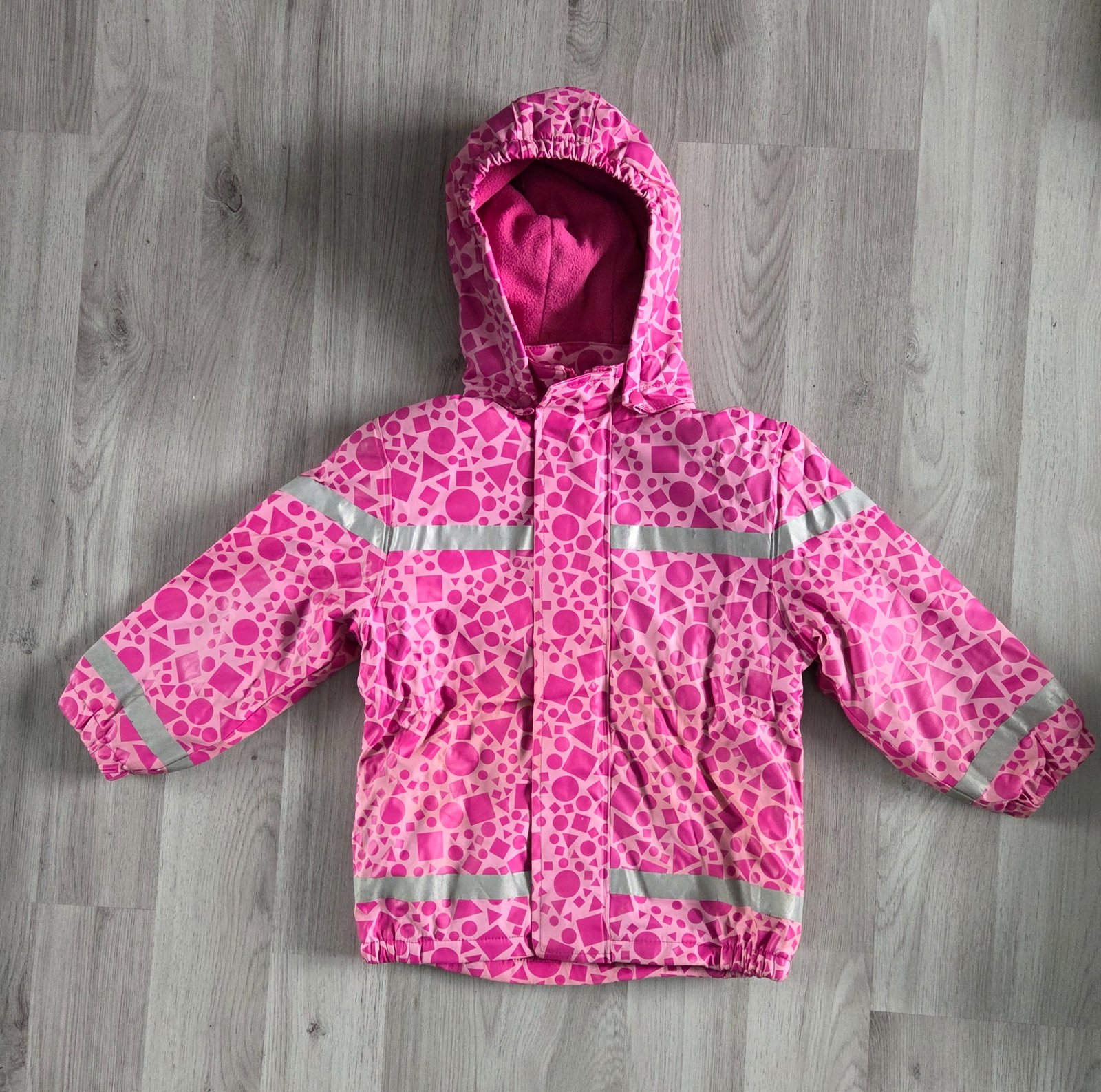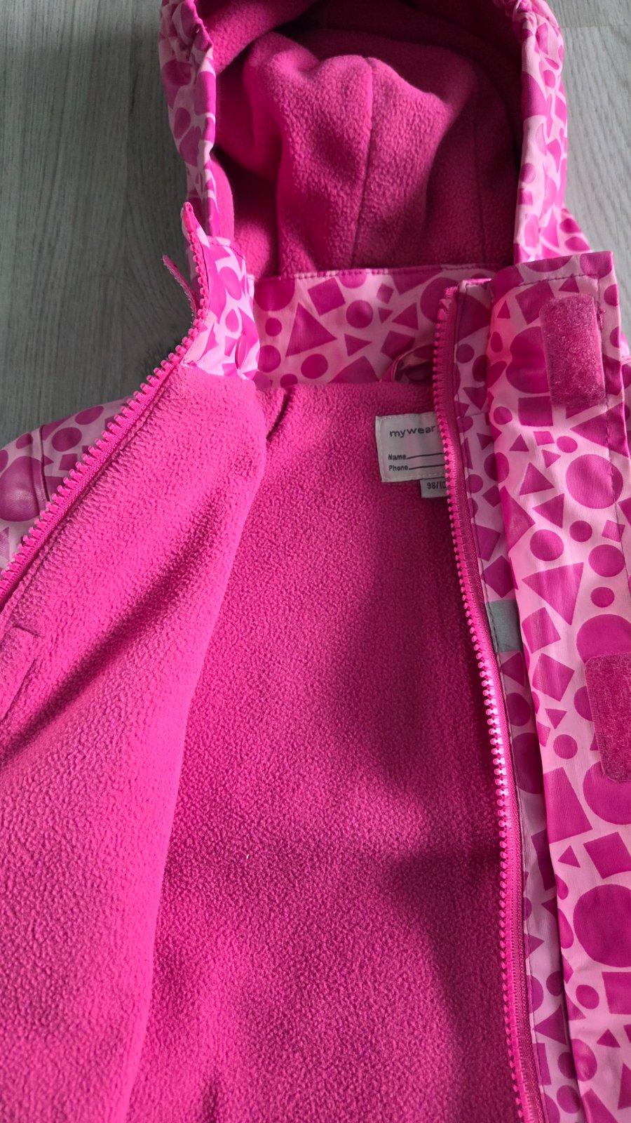 Vnitřní strana fleesová, kapuce odnímatelná. Má pár lehkých oděrek a flíčků, na zadní straně rukávů se malinko odloupává reflexní páska, jinak plně funkční.