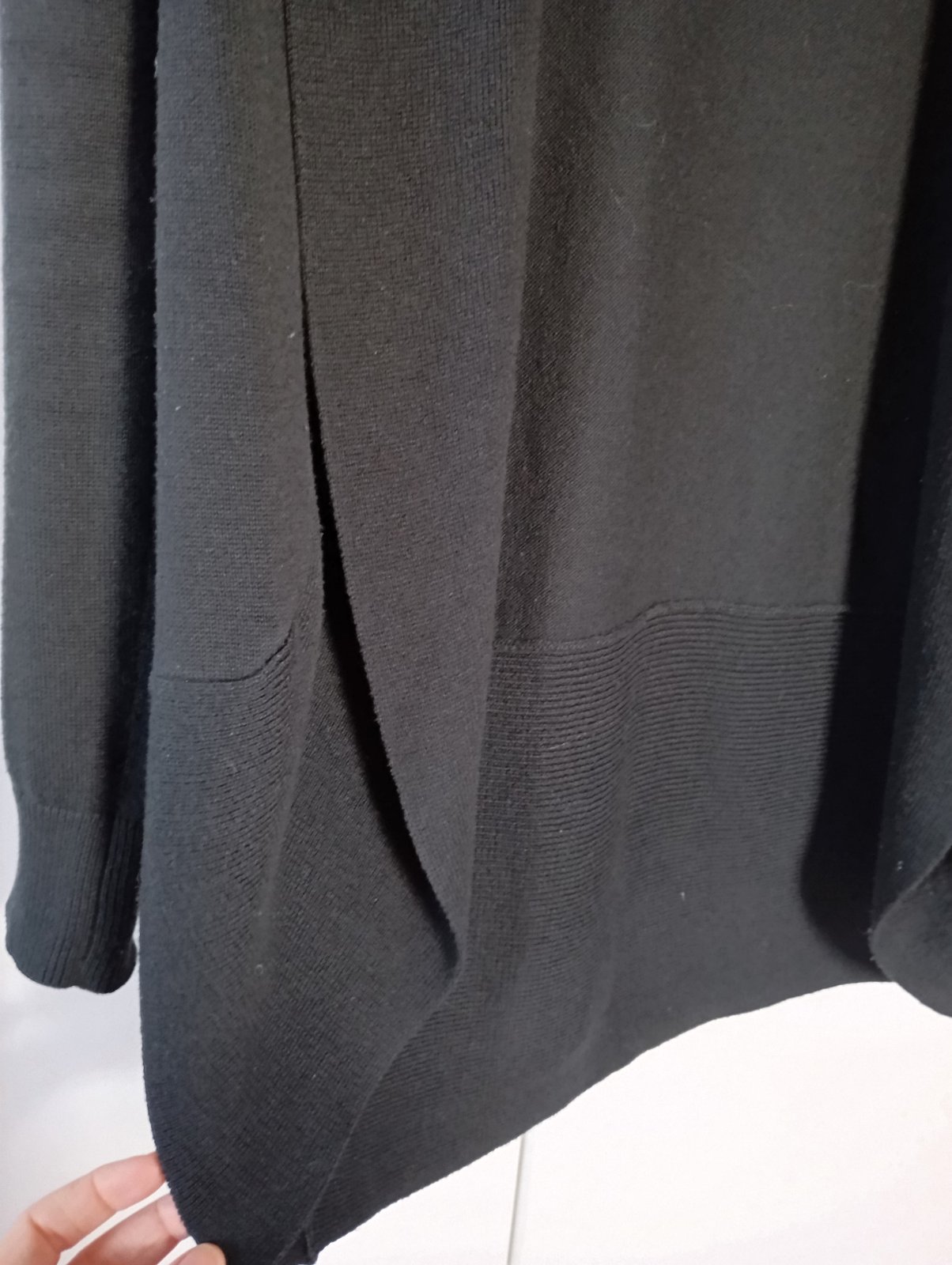 Velmi pěkný stav, jen pákrát nošený. Má dlouhé rukávy s jemnými žebrovanými manžetami, límec a zaoblený lem. Je slušivý a hodí se i na slavnostnější události. Zvládne splnit i funkci saka.