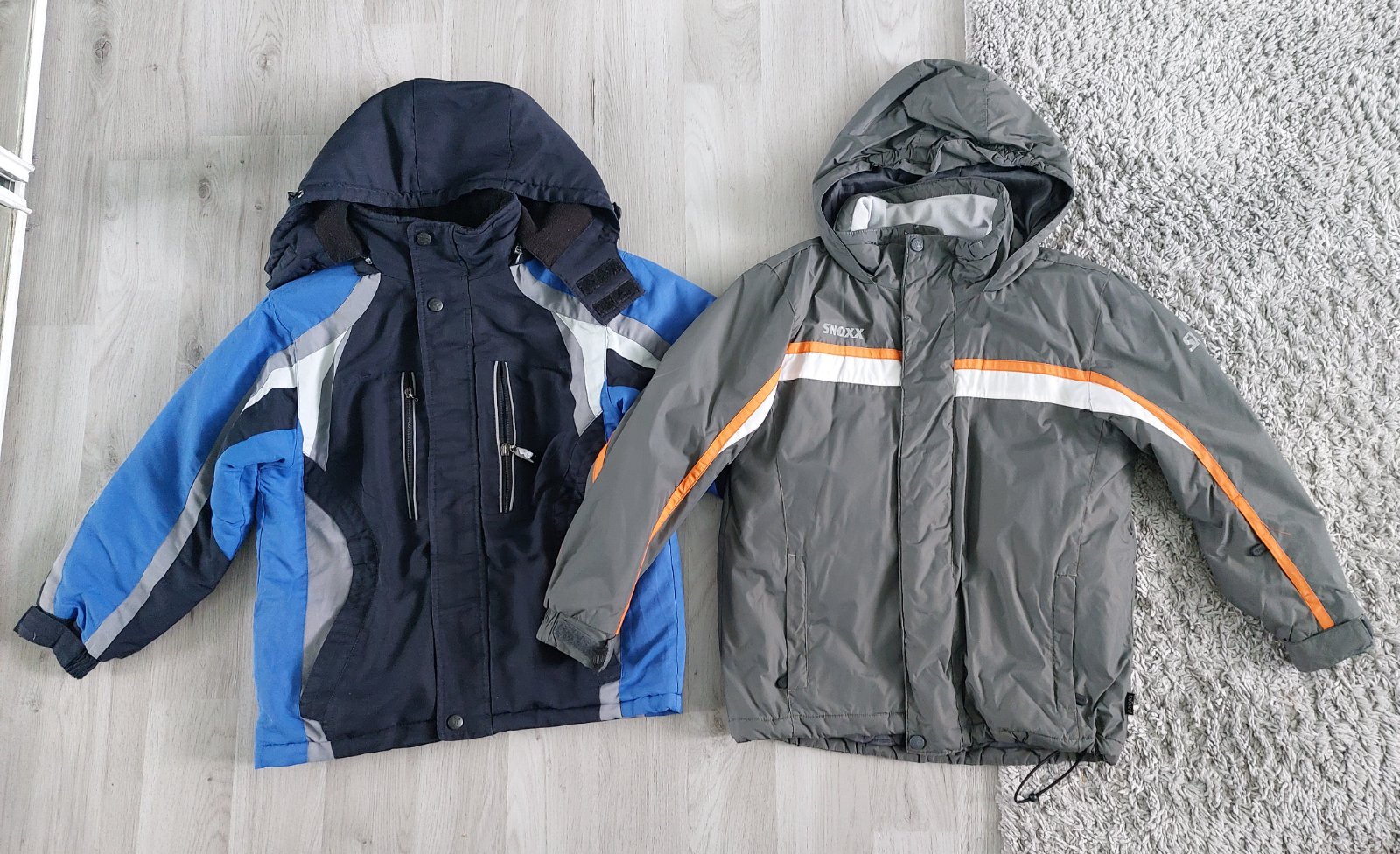 Prodám dvě bundy, modrá 134, šedá 140, ale syn nosil ve stejnou dobu.
