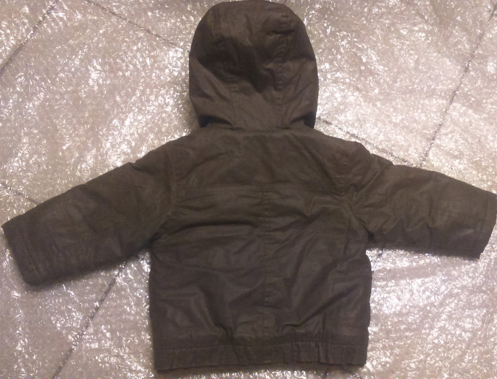 Krásná hnědá, koženková bunda uvnitř zateplená. Zapínaní na zips a patentky - vel. 74