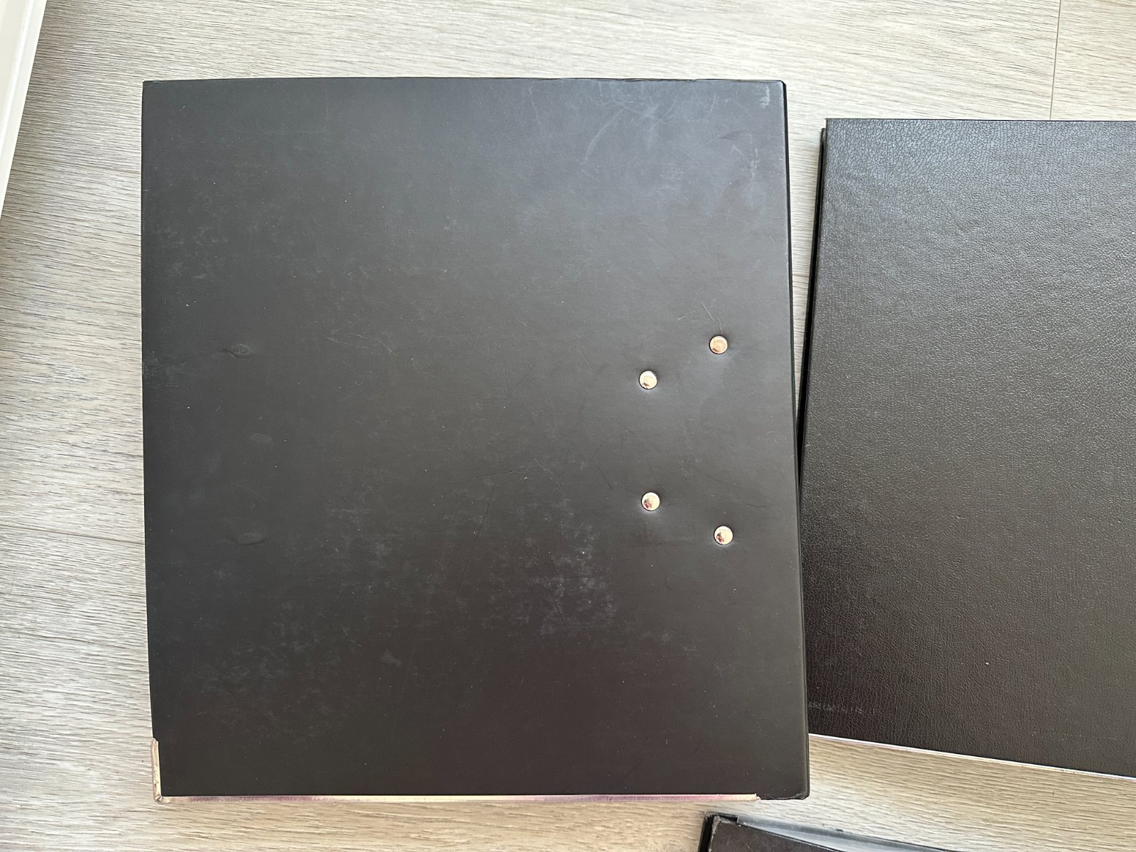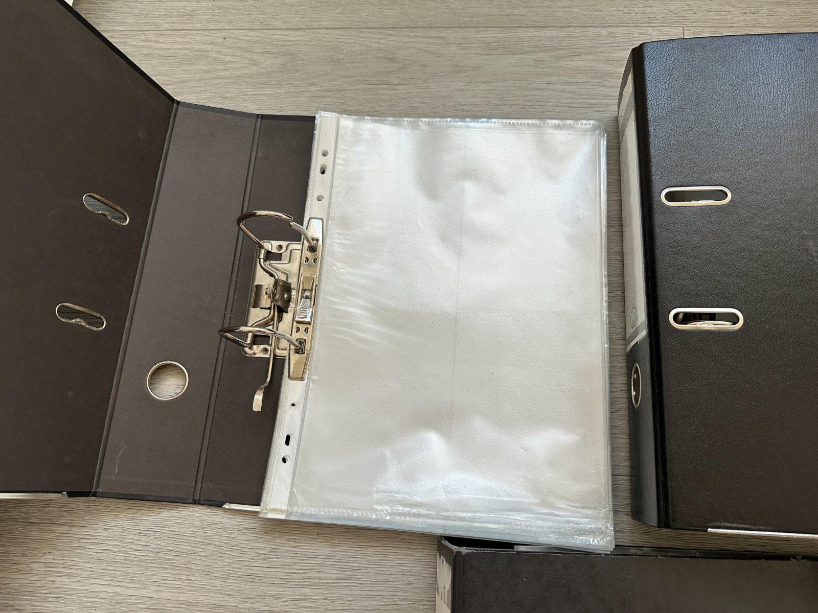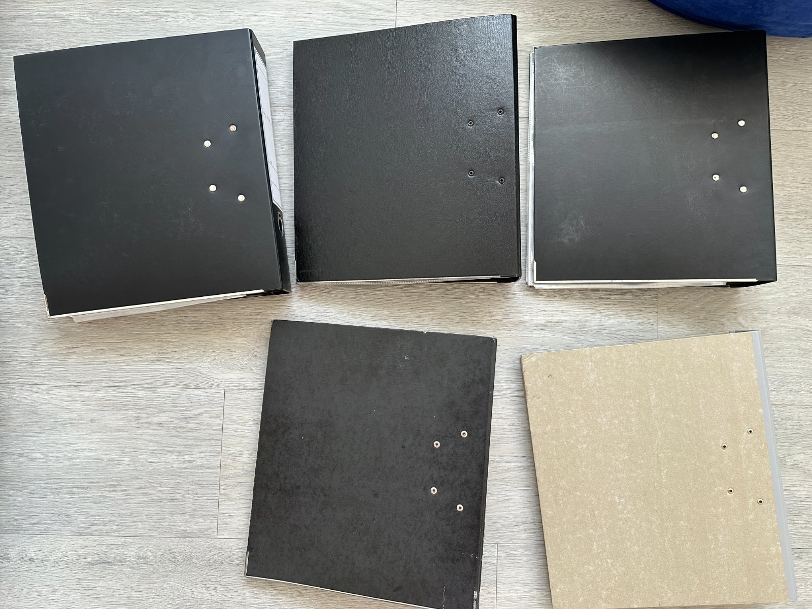 Šanon na dokumenty / pákový pořadač, 5 ks vč. euroobalů - 4x černý šanon - 1x šedý šanon - uvnitř každého šanonu několik euroobalů - cena je za všech 5 kusů šanonů s euroobaly