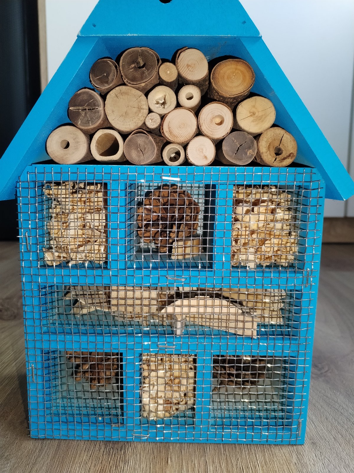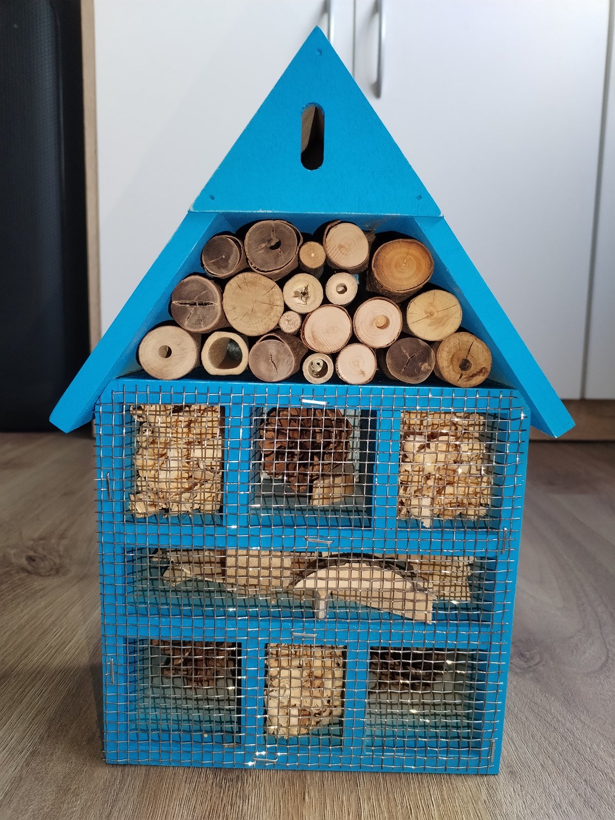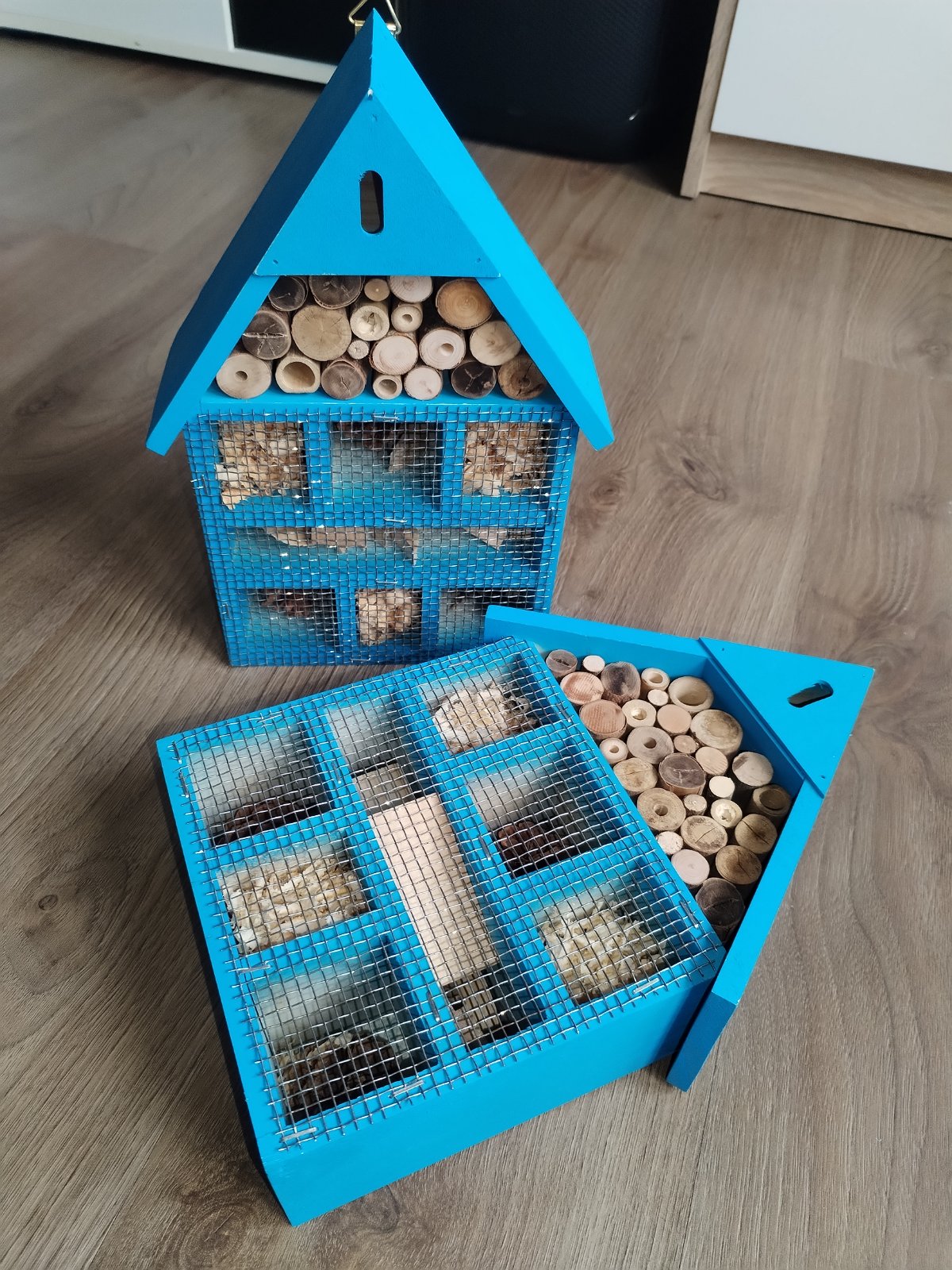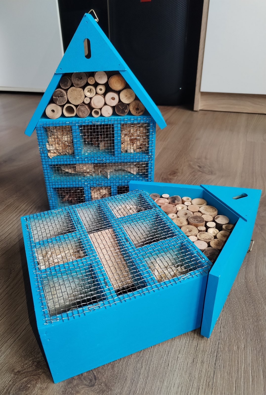 Nabízím hmyzí domeček (hotel), ruční práce, celodřevěný, nový a nepožitý, rozměr 29x20x9 cm. Organic pac. Vhodné na sledování hmyzu doma například na balkoně nebo na zahrádce, ve škole ve školce atd. Můžu nabídnout více kusů, cena za kus 200