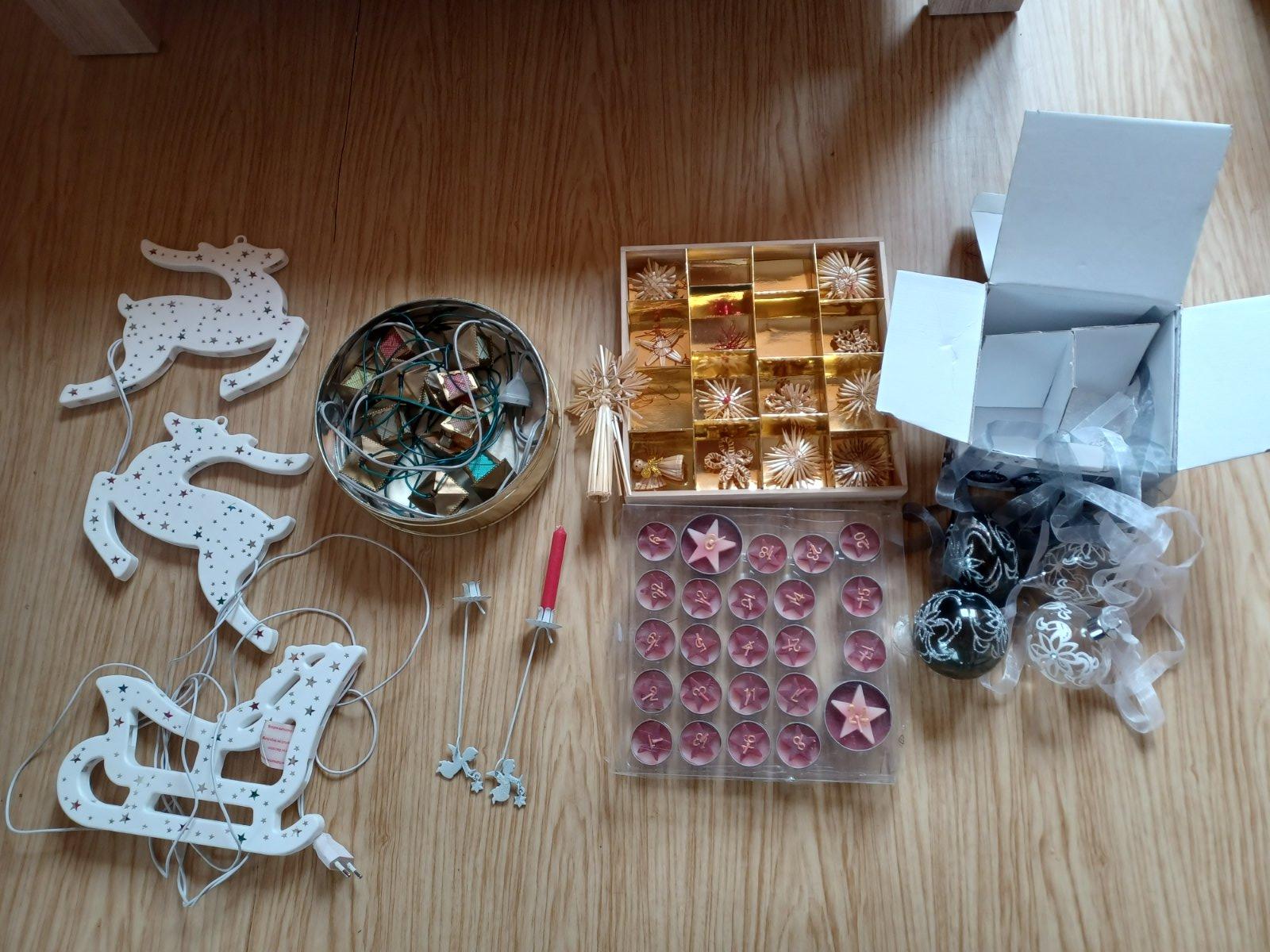 Lucerničky a světla se sobíky prodané! Různé retro vánoční ozdoby a vánoční dekorace, lucerničky nesvítí, bílá dekorace svítí, adventní svíčky jsou zn. Tchibo, ceny jednotlivě dohodou, uvedená cena celkem (bez lucerniček a světýlek se soby).