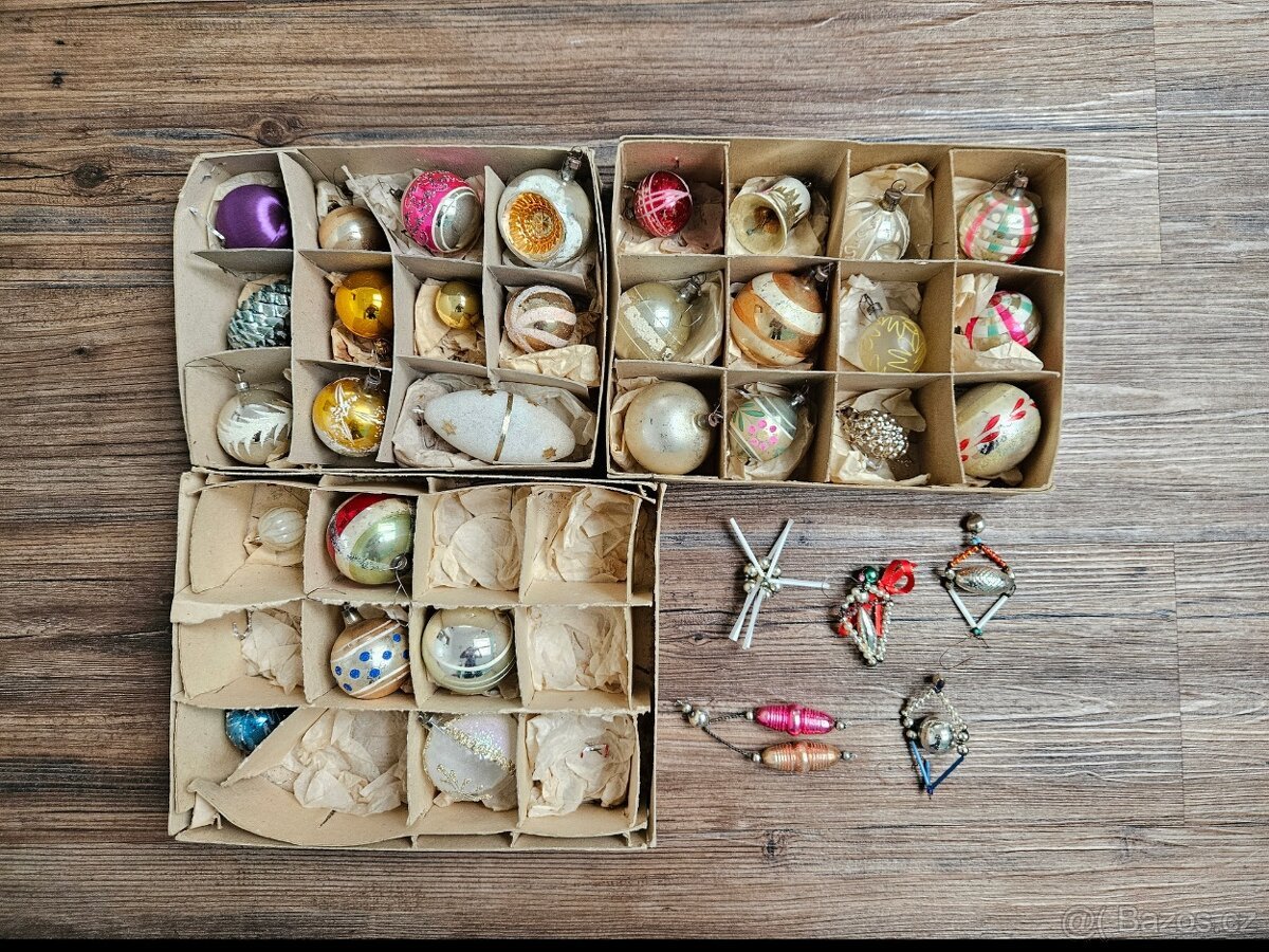 Retro vánoční ozdoby skleněné 34 ks