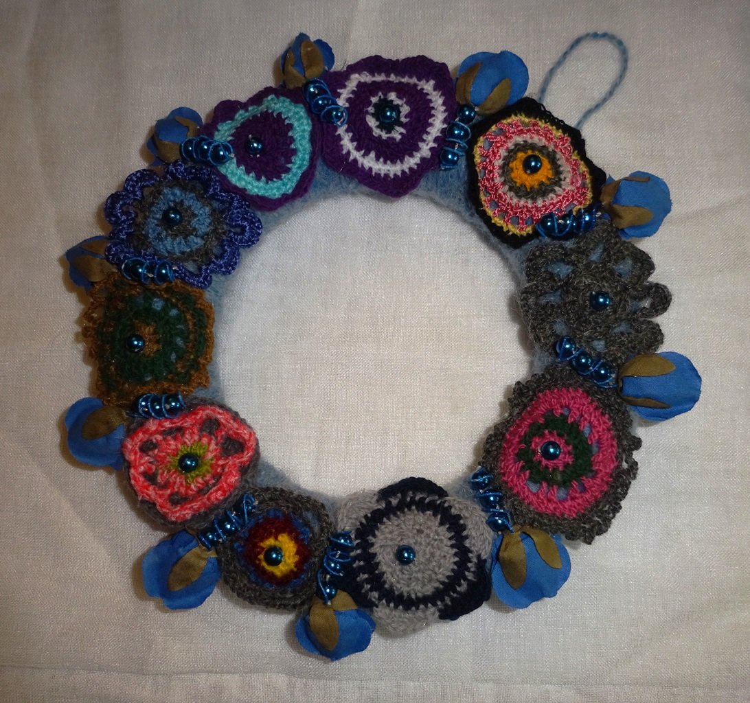 Ruční práce háčkovaný věnec Modrásek cca 22 cm