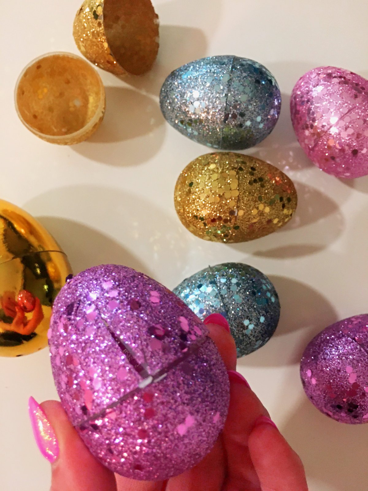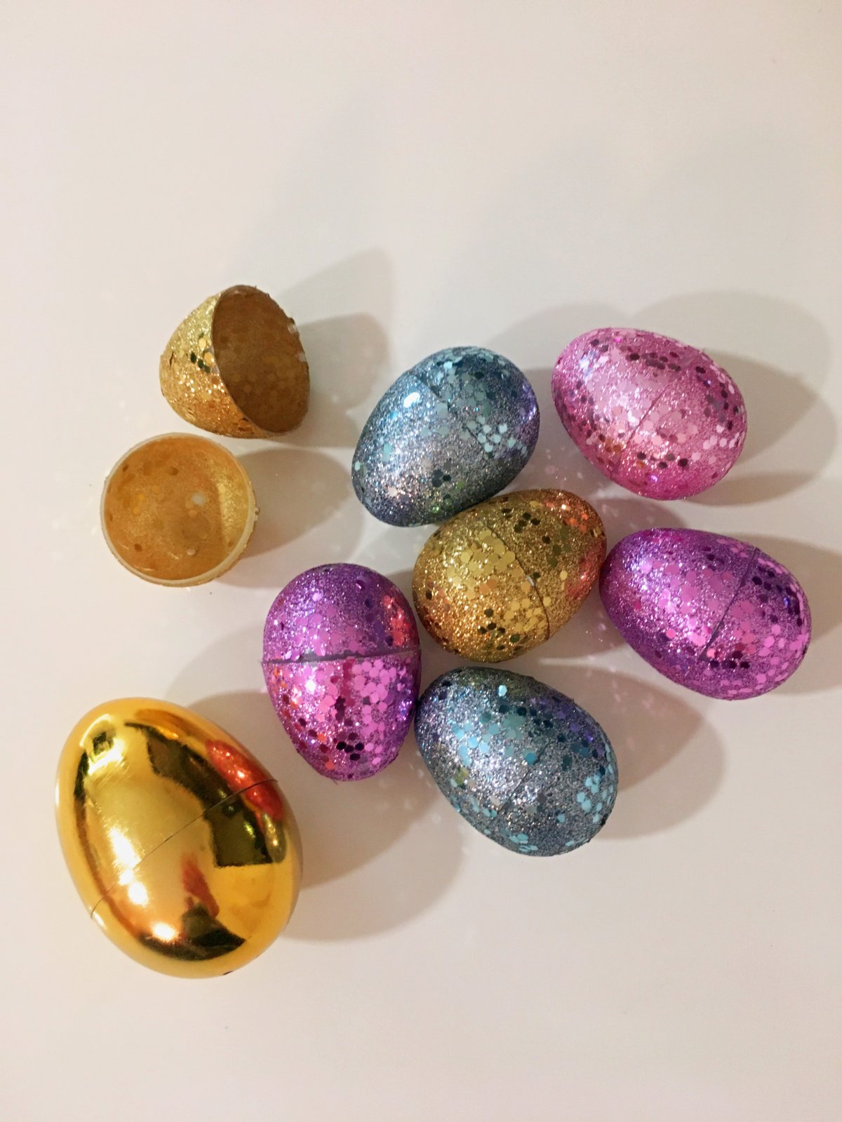 7 ks třpytivých (z toho jedno je prasklé - fialové).