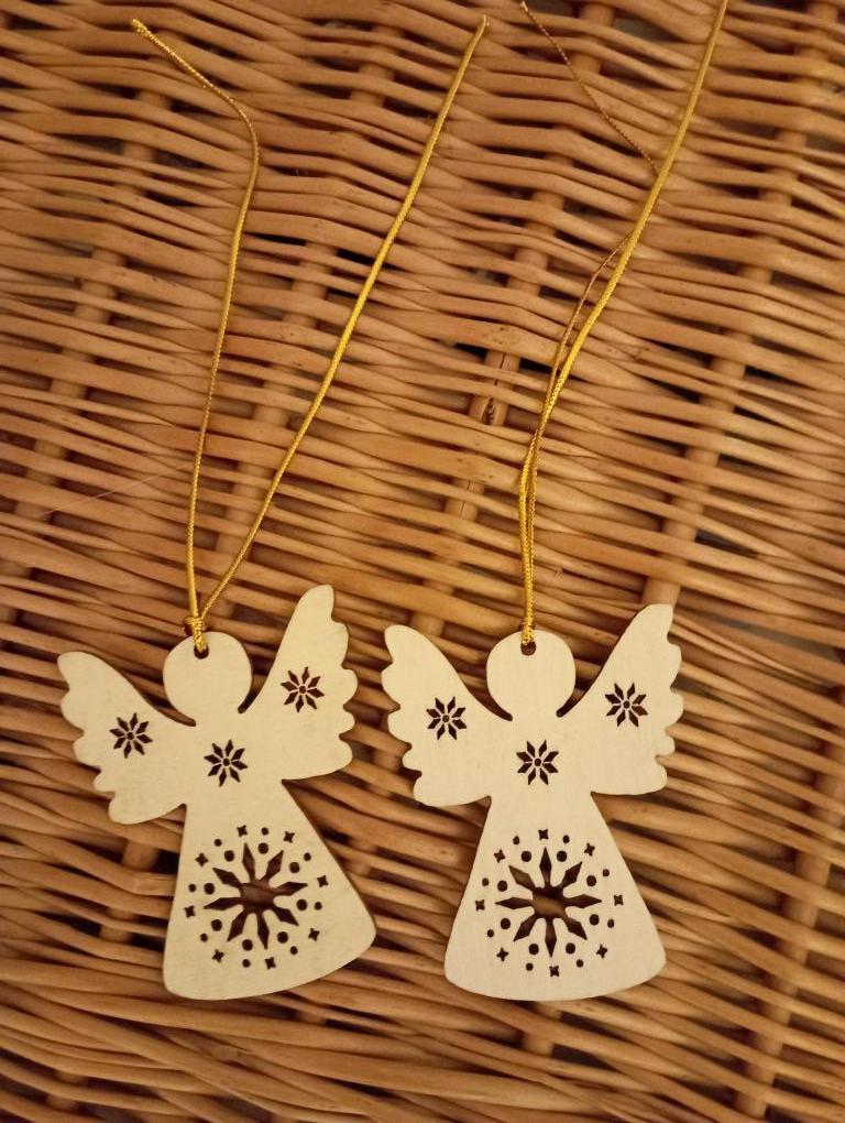 Sada dvou dřevěný andělíčků, nové, nepoužité, top stav.