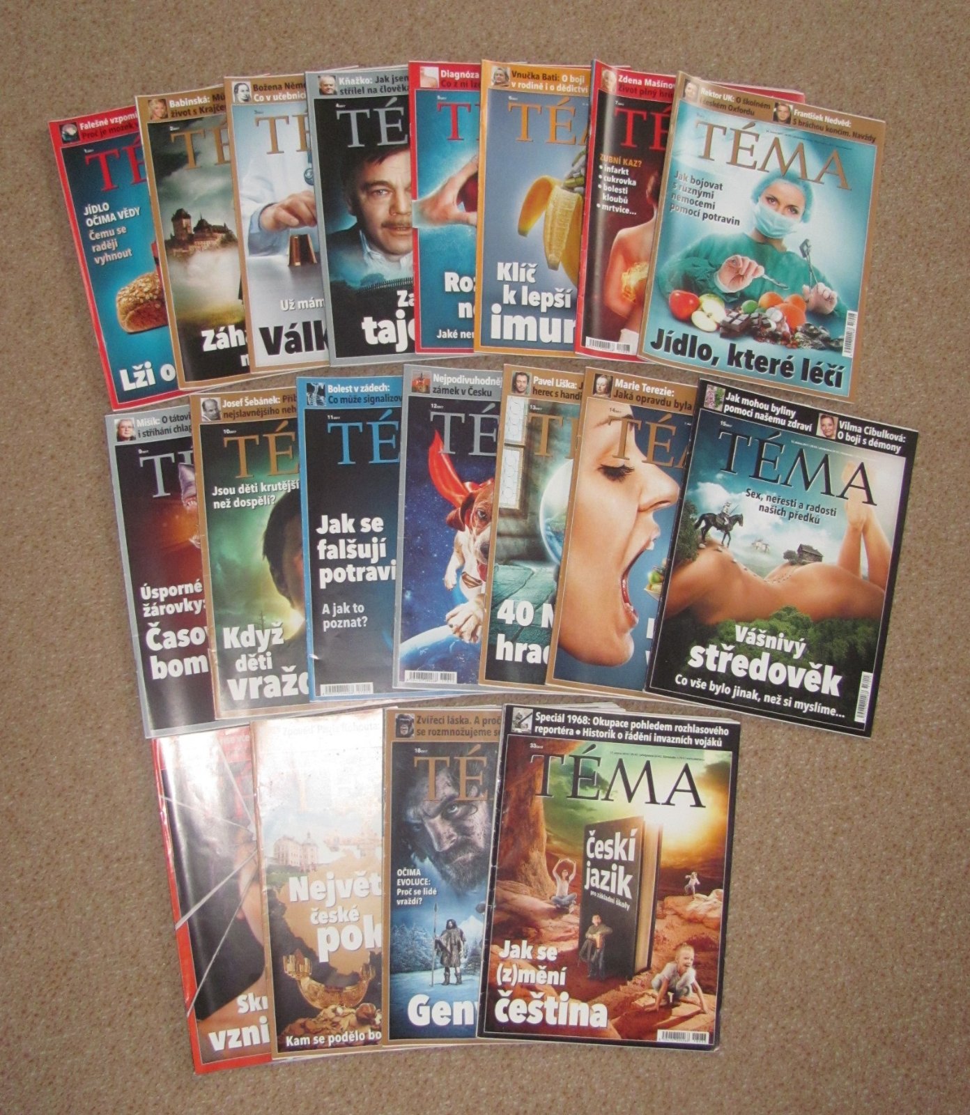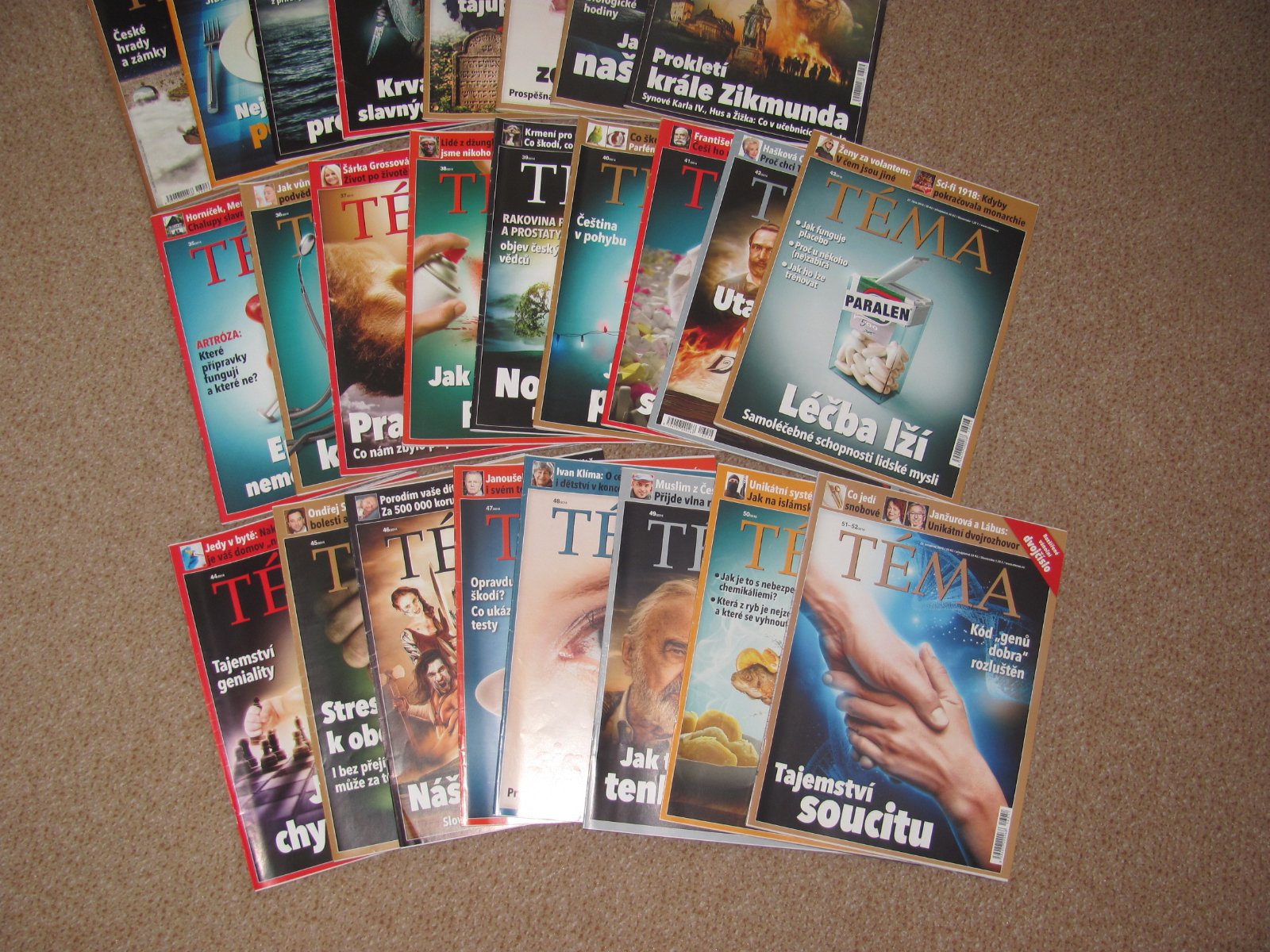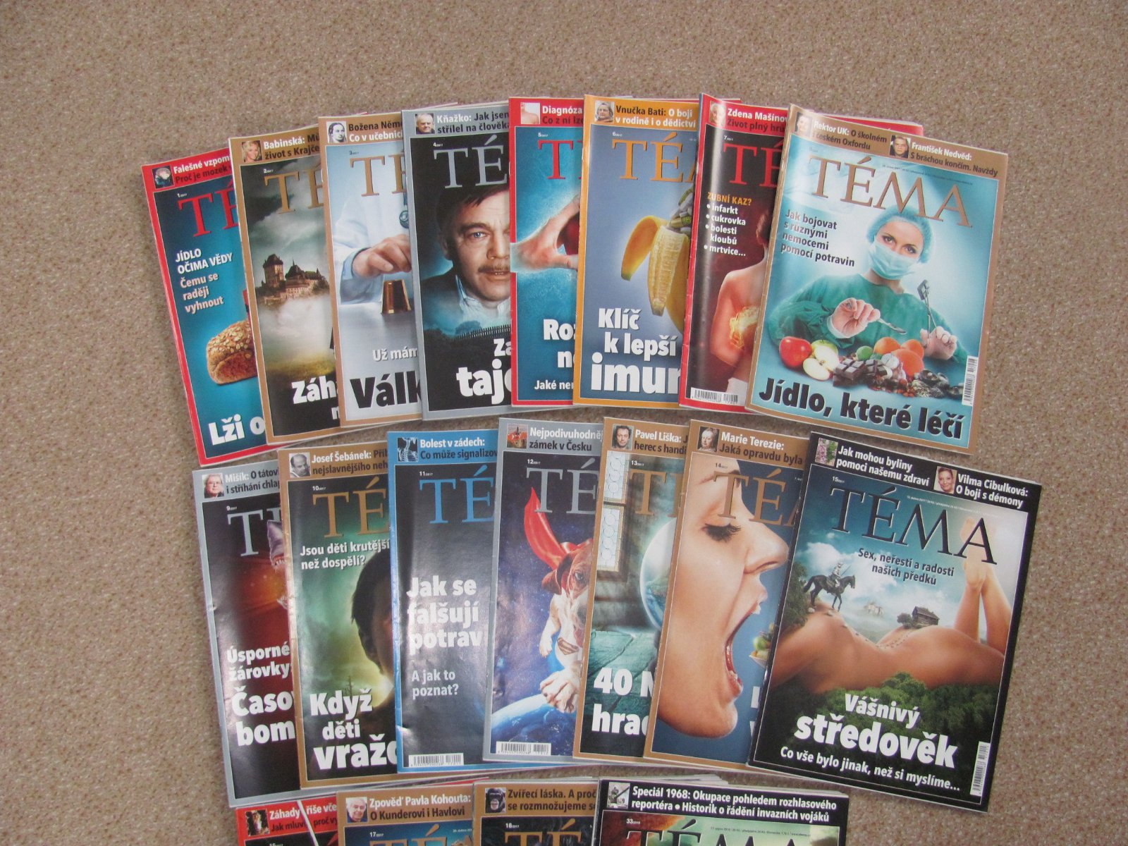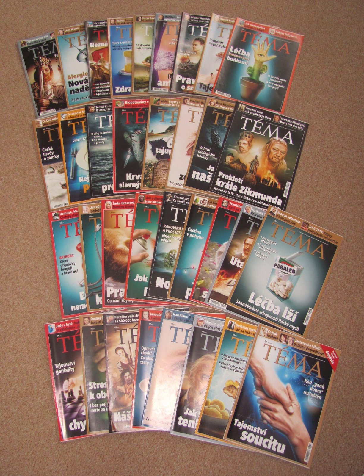 Časopisy Téma: 16/2016, 18 - 52/2016, 1 - 18/2017, 33/2018 a speciál 1/2016. Celkem 54 ks. Ve výborném stavu, křížovky vyluštěné. 10 Kč/ks, při koupi všech cena 500 Kč.