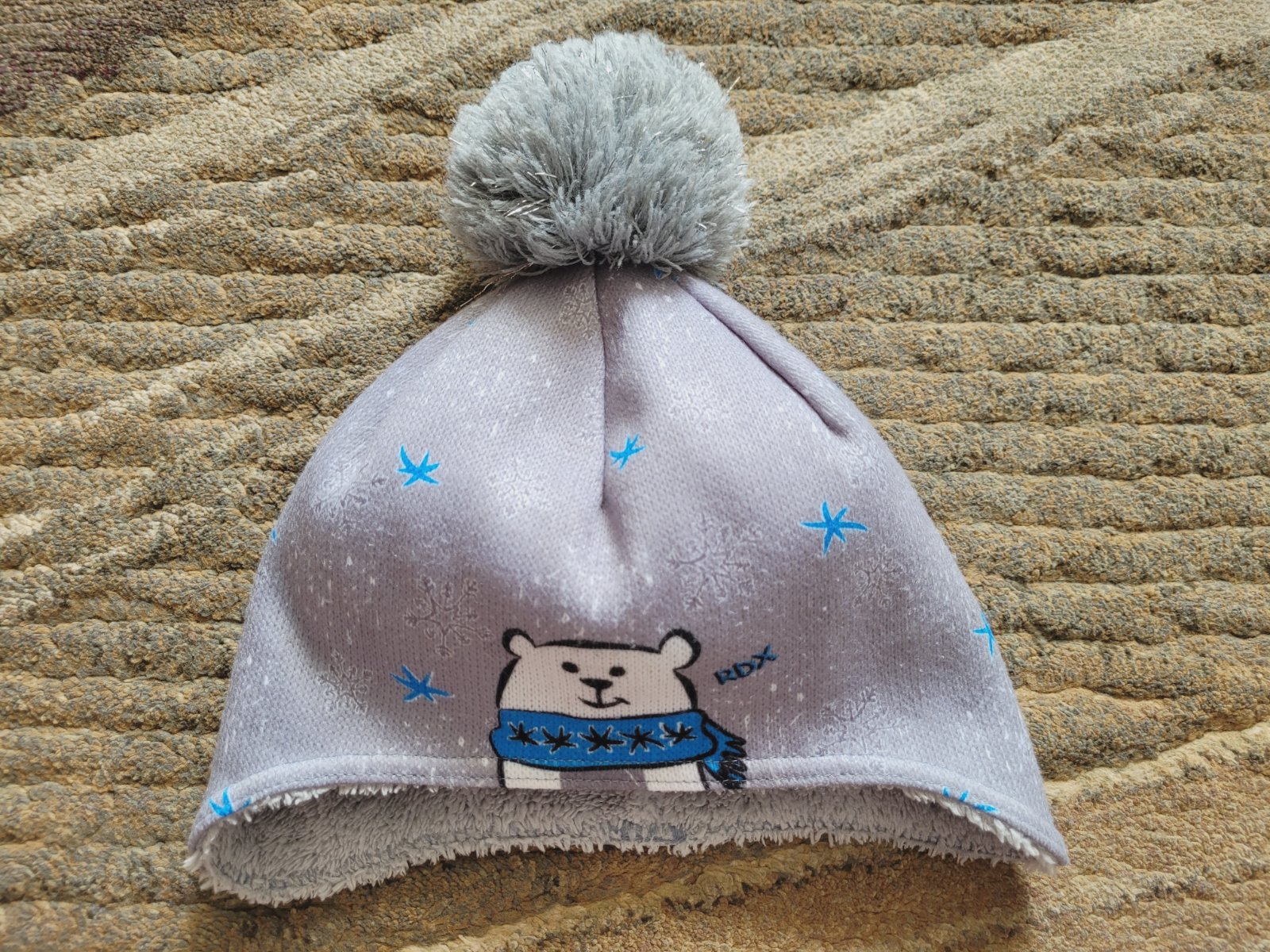 Hodně teplá zimní čepice s bambulí zdobená obrázkem ledního medvěda, přes uši o něco delší, na povrchu pletená, uvnitř kožíšek. Doporučuji, skvělá do mrazů.