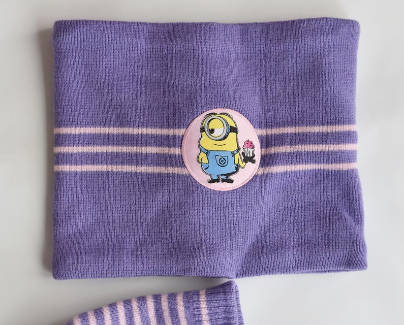 Fialový pletený set, Nákrčník podšitý fleesem.
