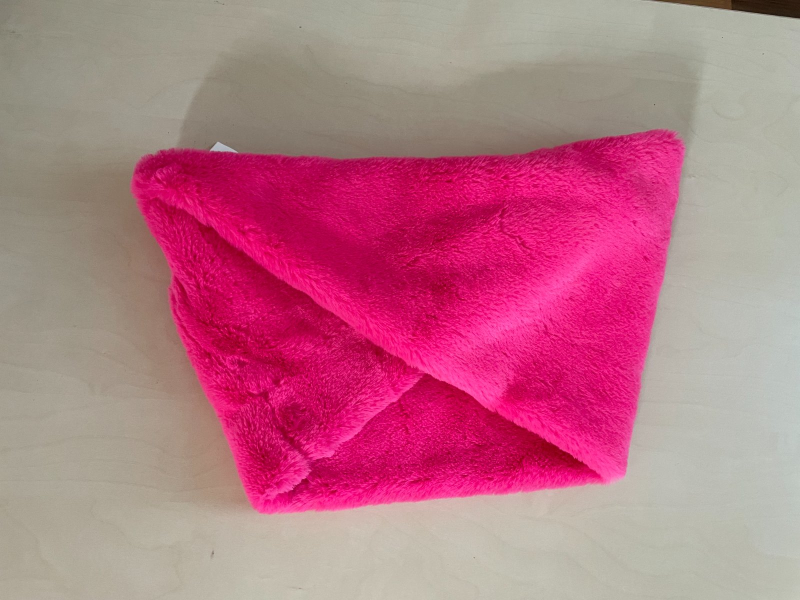 hol. nabízím k prodeji tento teploučký, beký tunel, vel univerzální - one size. Materiál zdvojený, měkoučký s plyšovým chloupkem. Barva výrazná růžová až neon. není to klasický tunel, je tam protočení. Materiál 100% polyester. Dcera měla v šatníku a myslím ani nenosila.