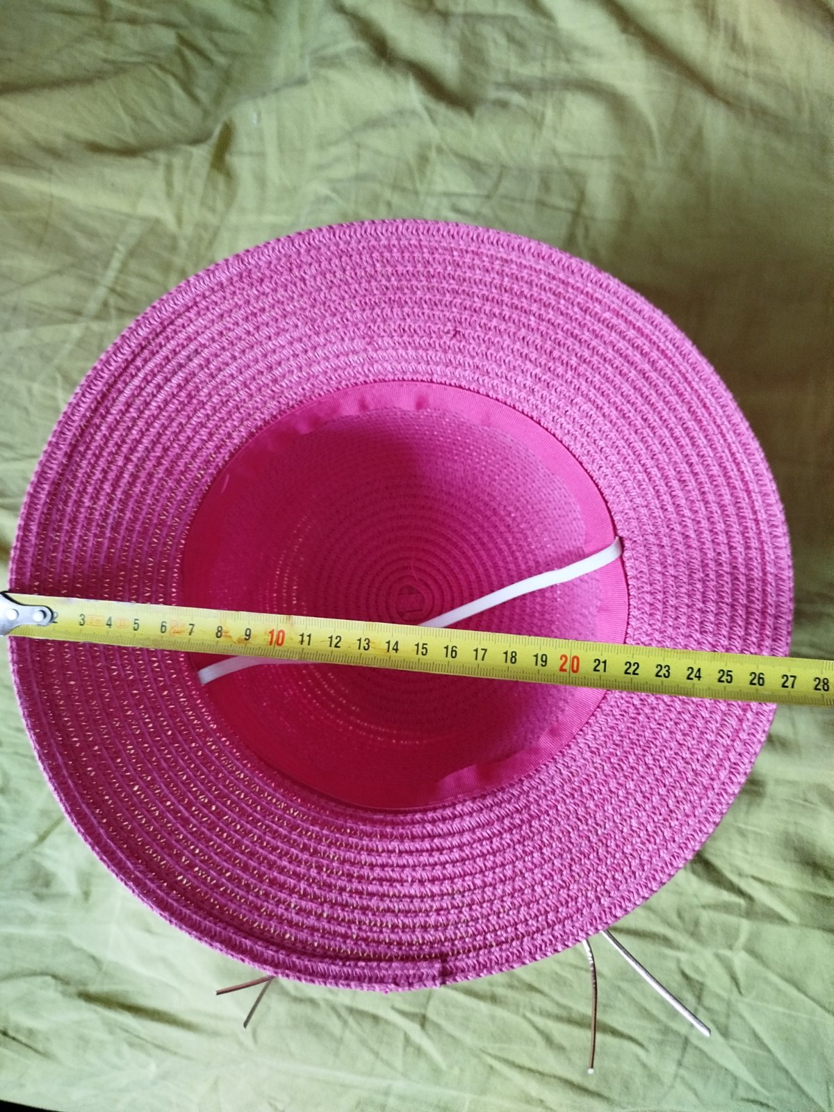 Kloboucek jsme neunosily. Mala ho mela tak 1krat. Takze jako novy. Obvod hlavy tak 46 cm. Vyska kloboucku 13cm, bez okrajoveho lemu.