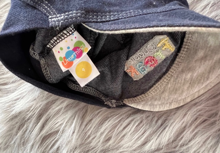 Kšiltovka 1x oblečená. Vel. uvedena 2-5 let, ale je menší. Tak 1-3 roky. Trhaný styl. Průměr cca-18 cm