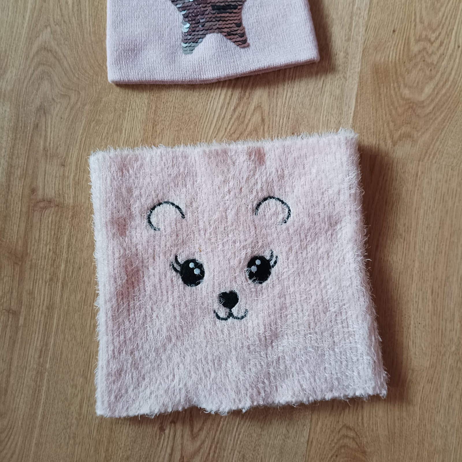 Čepice vel. 54 s otáčecími flitry a nákrčník, v krásném stavu.