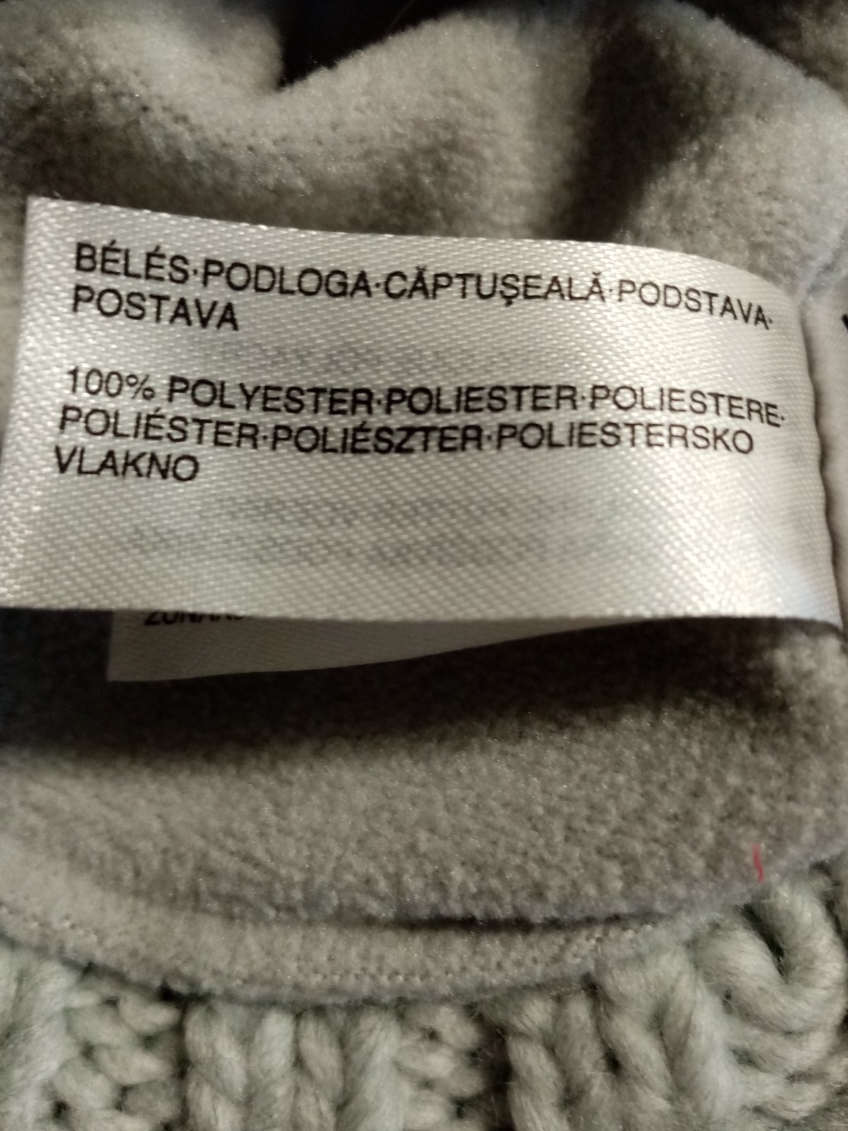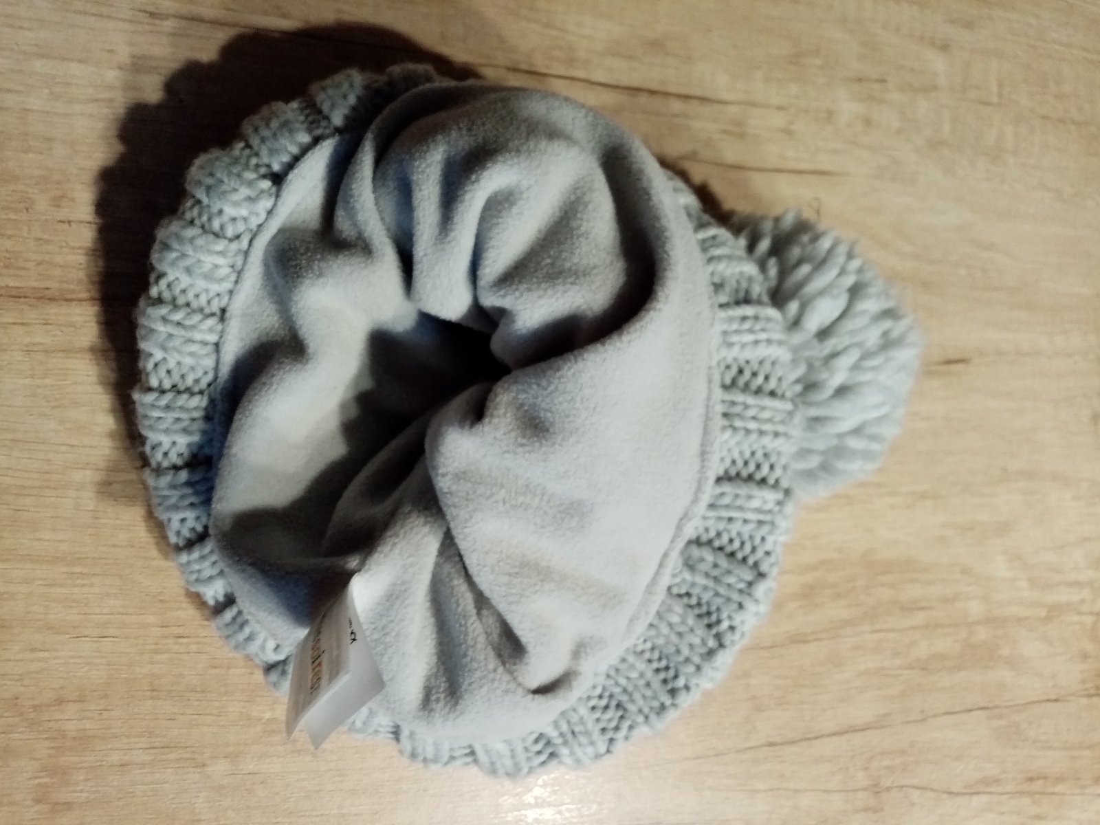 Krásná pletená čepice zateplená fleesem. Běžné známky praní, žmolky. Sedí cca 2-4 roky.