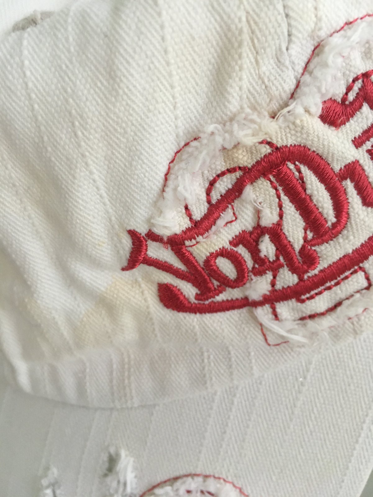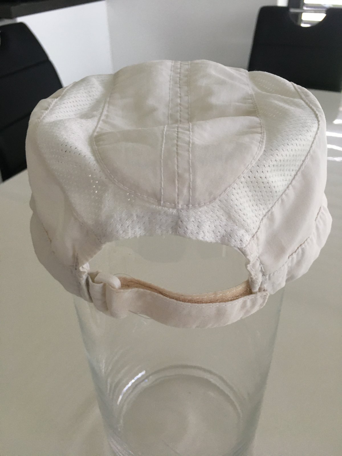 Bílá HI-TEC - oloupaný šedý proužek nad kšiltem; cena 100 Kč.
