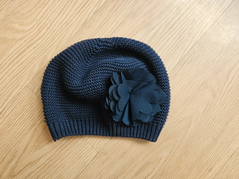 Baretová, tenká, pletená čepice, bez podšití, vhodná na jaro/podzim, velikost cca 2-3 roky, cedulku jsem bohužel odstřihla, barva tmavě modrá, velmi slušivá, jako nová