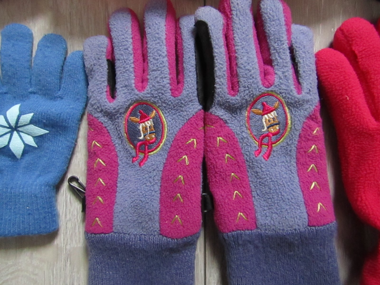 flaušové s koníkem-délka rukavic je je 21 cm,šířka u palce je 8 cm,na vnitřní straně trošku odřené-cena 25 kč
