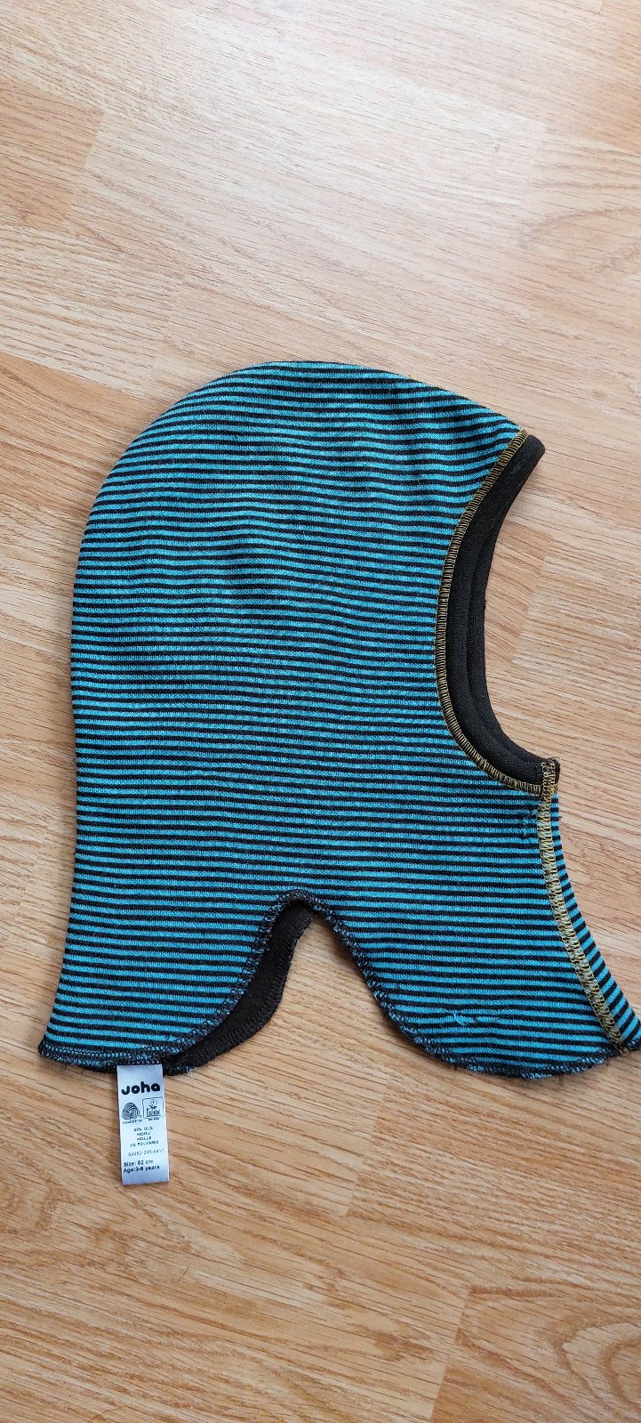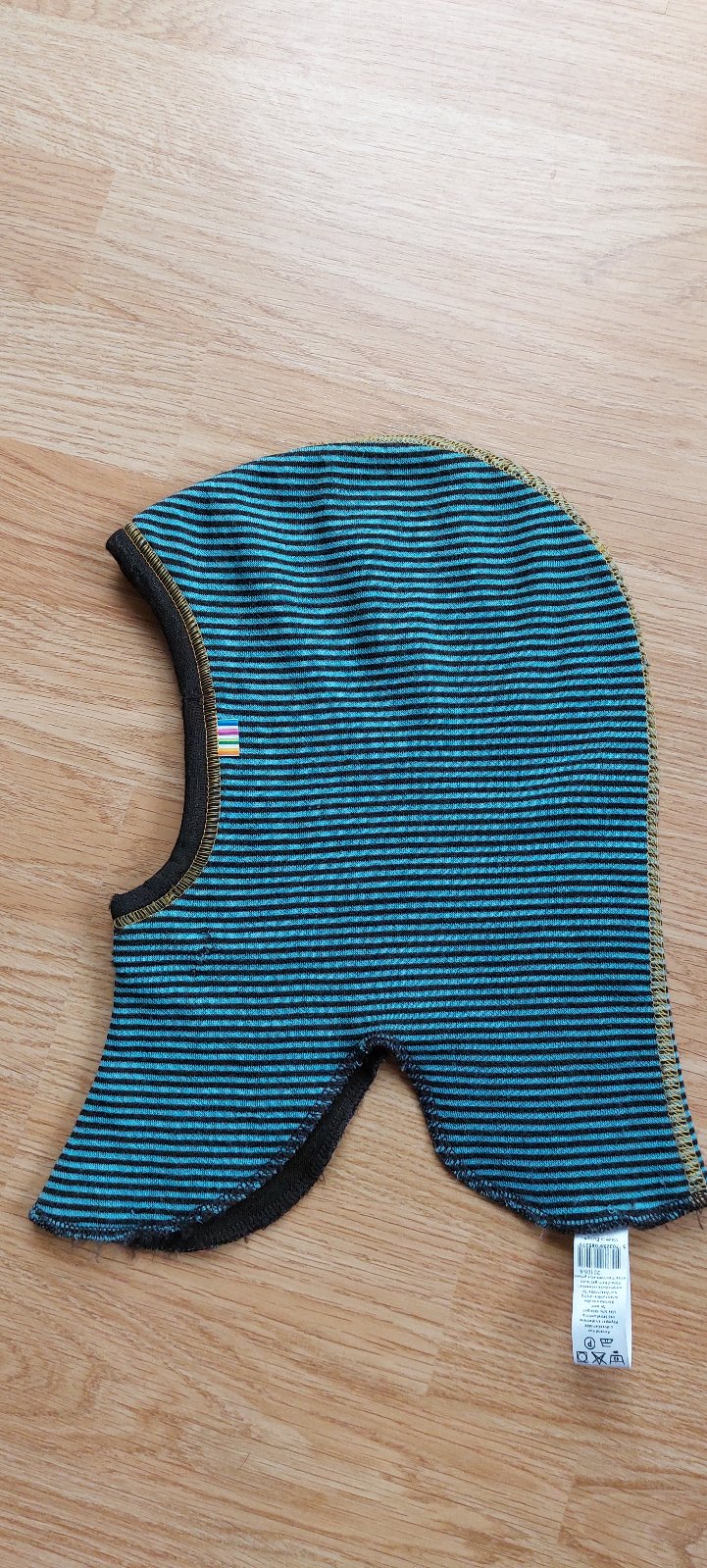 Nabízím merino kuklu, velikost psaná 52 cm, 3-6 let. Dvě zašité dirky pod bradou, ale ještě poslouží.