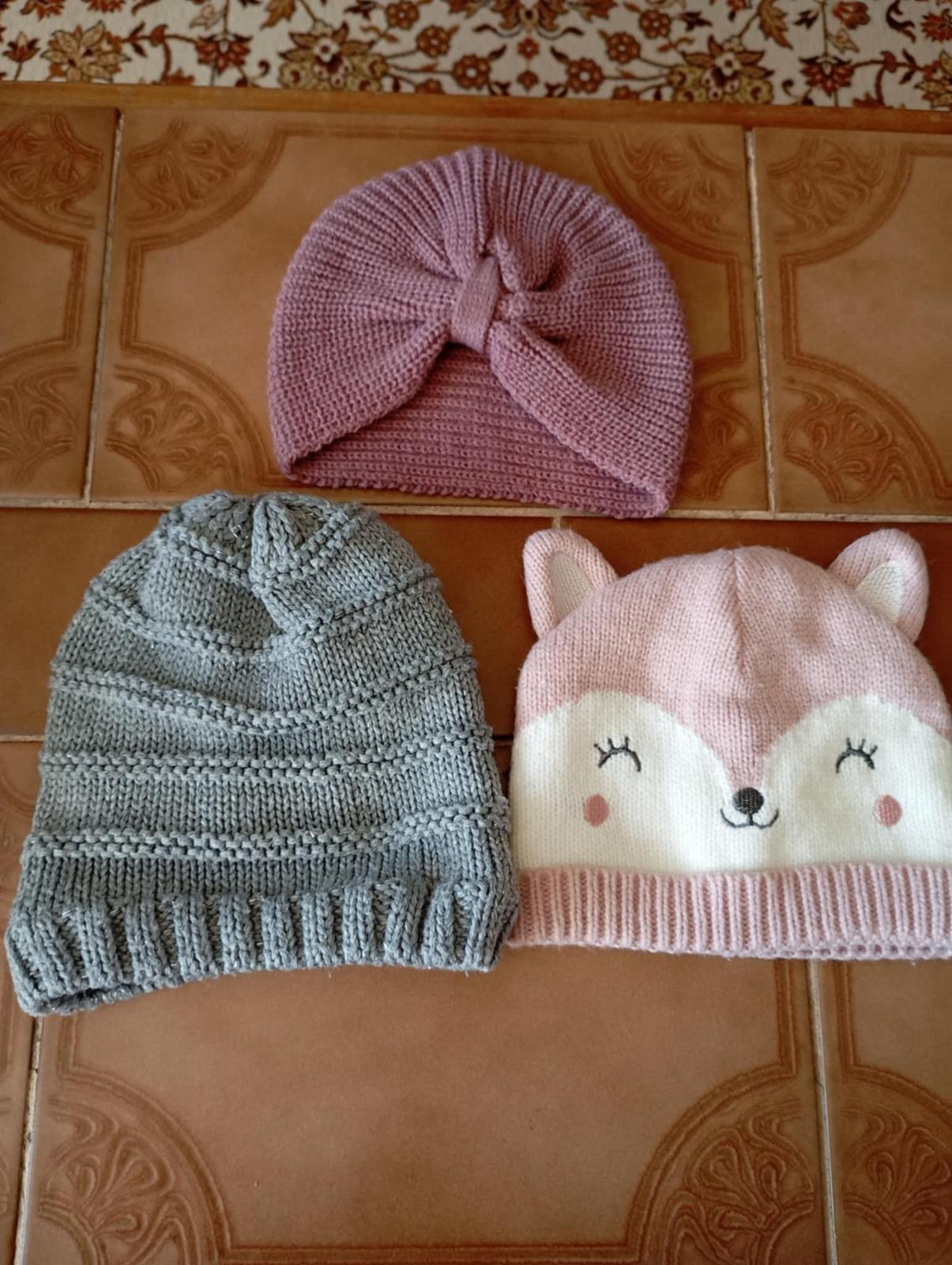 3x velmi pěkné dívčí čepičky, asi na 0,5 - 1 rok