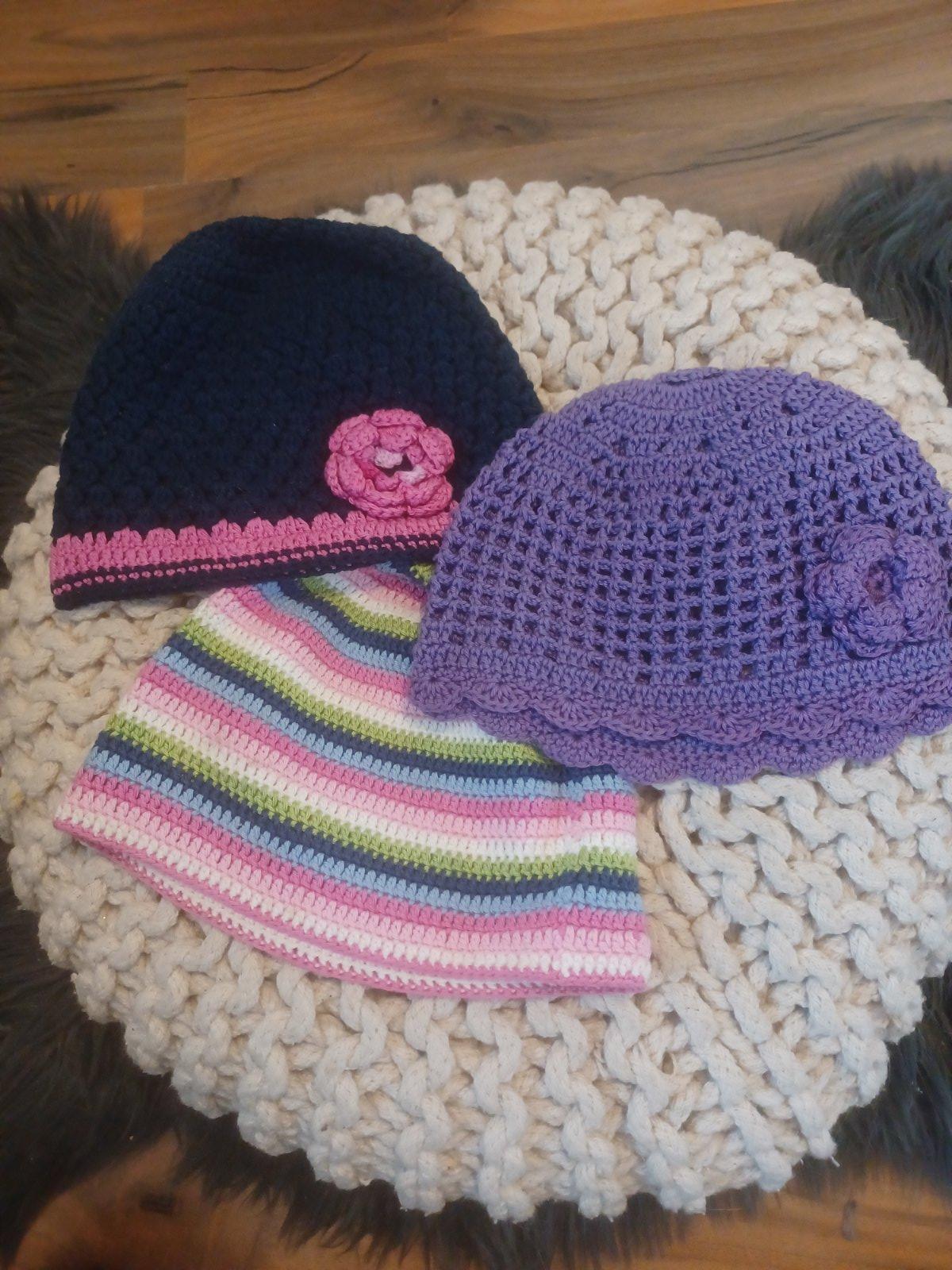 3krát háčkovaná čepička dělaná na zakázku, dle dcery 2-4 roky, ráda přeměřím. Nošené. Cena celkem nebo kus 80.