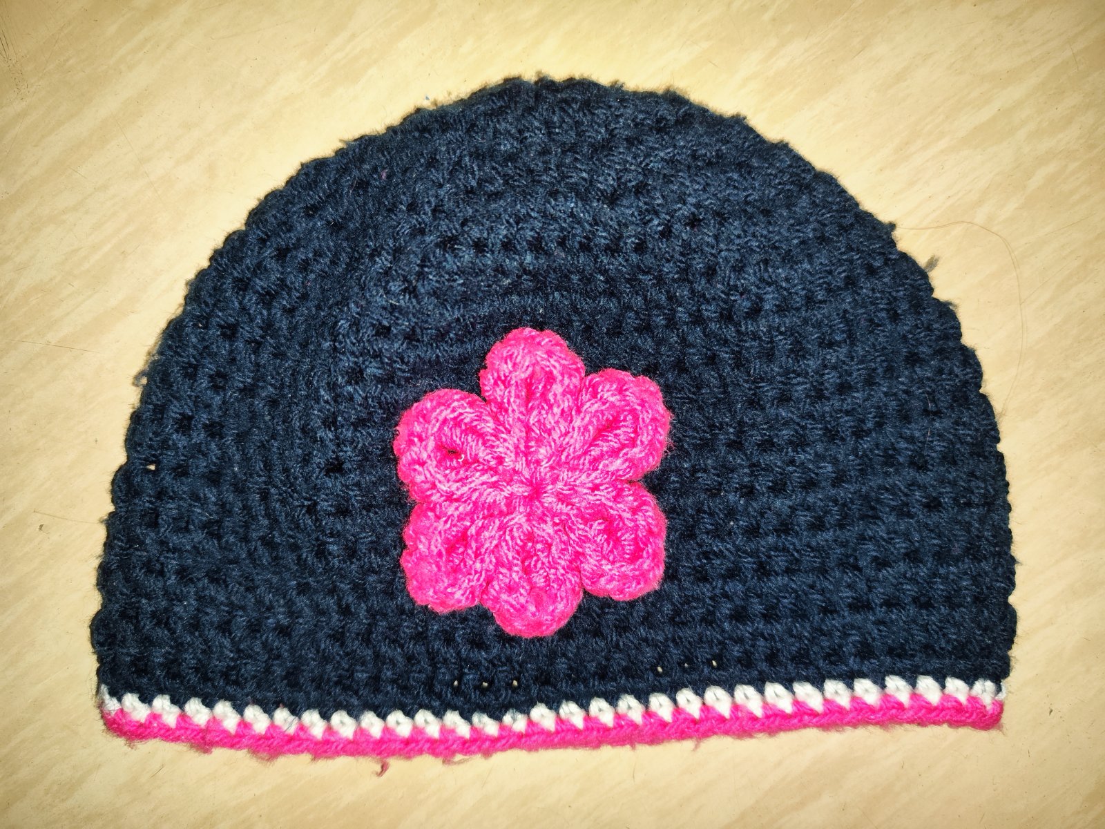 Prodám háčkovanou čepici s kytkou. Velikost 158-176, může být i pro dospělé, rozměry – šířka 24, 5 cm; nejvyšší délka 21, 5 cm. Cena 50 Kč, v Brně možné osobní předání.