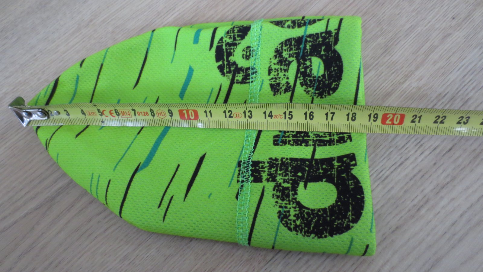 Vel L, ale odpovídá vel. M (co máme zkušenost s touto značkou), pro obvod cca 54 cm, synovi proto malá. Nošená chvilku. Rozměry ve volné stavu viz. foto.