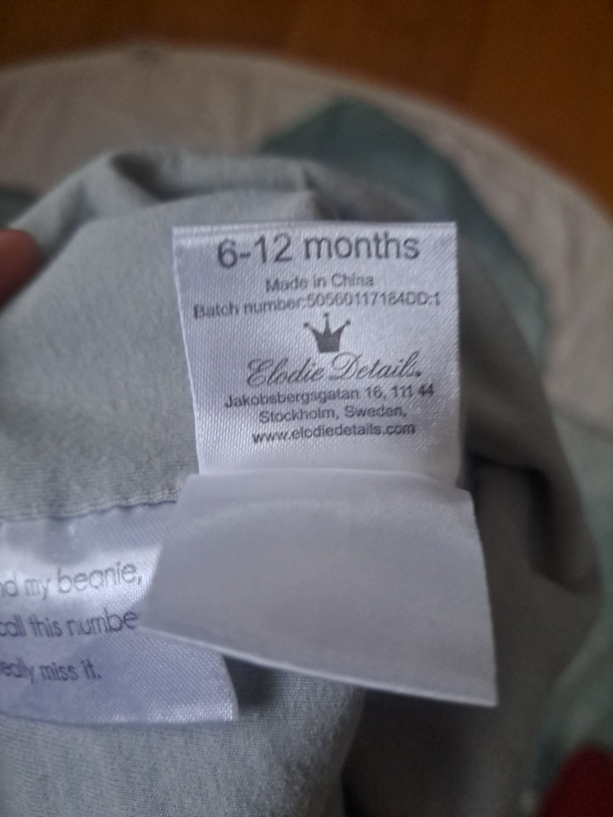 Vel. 6 - 12 měsíců. Šedá s malou korunkou. Prací chloupek.